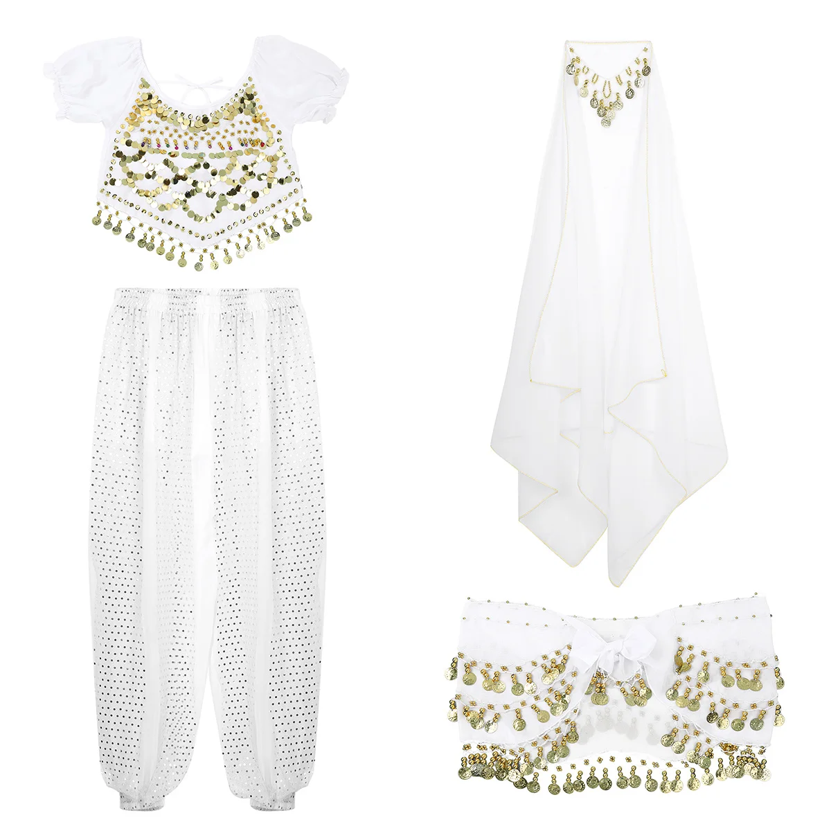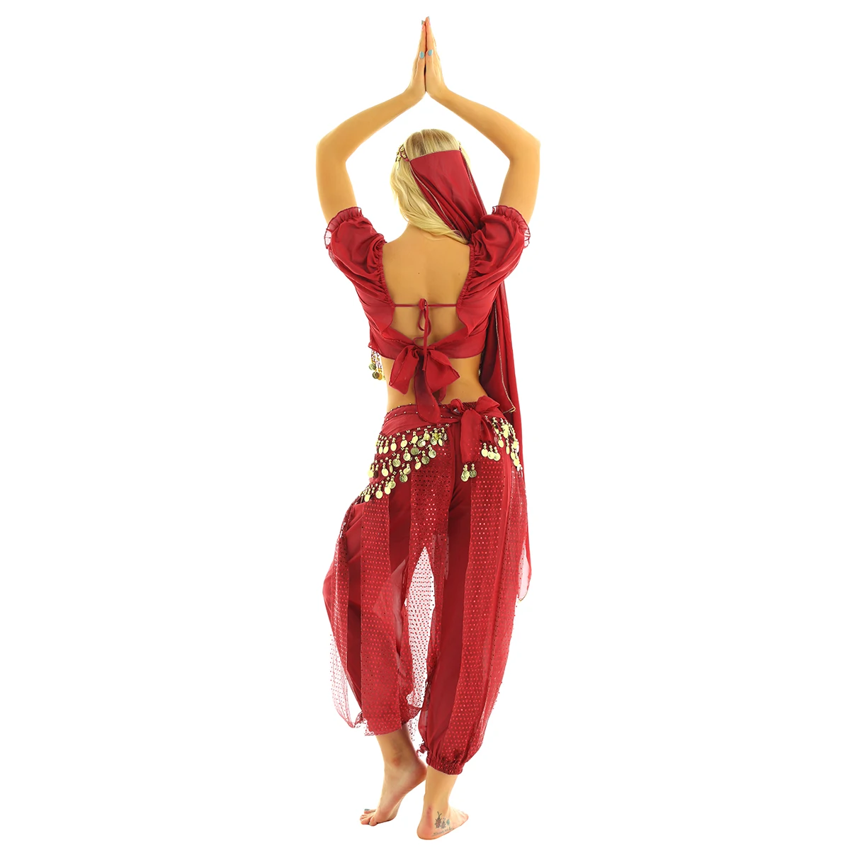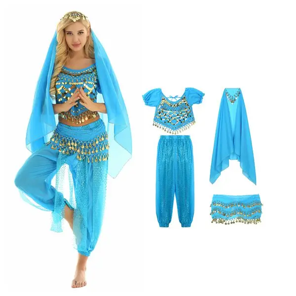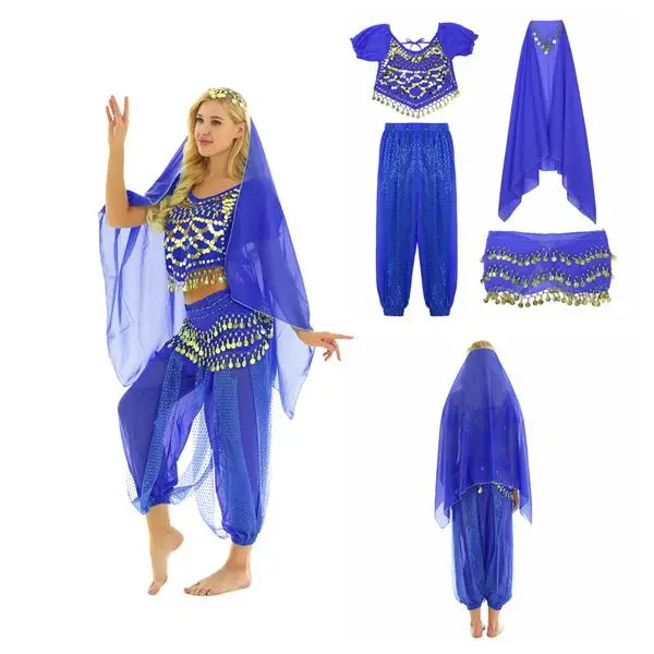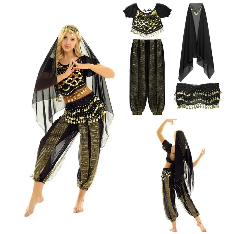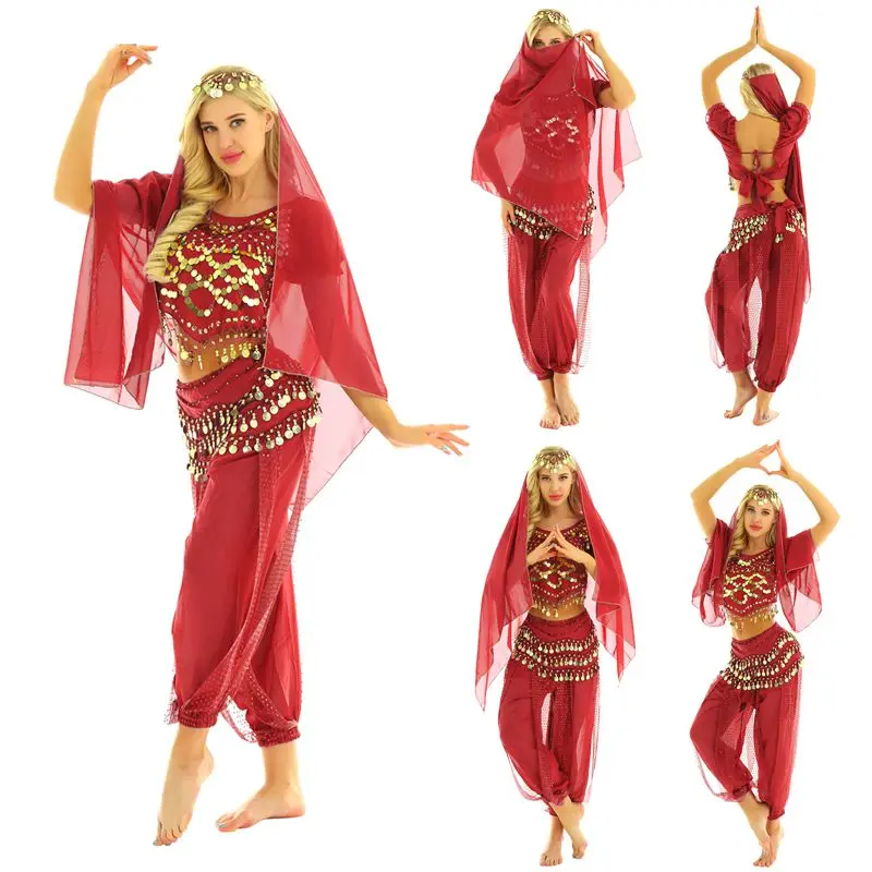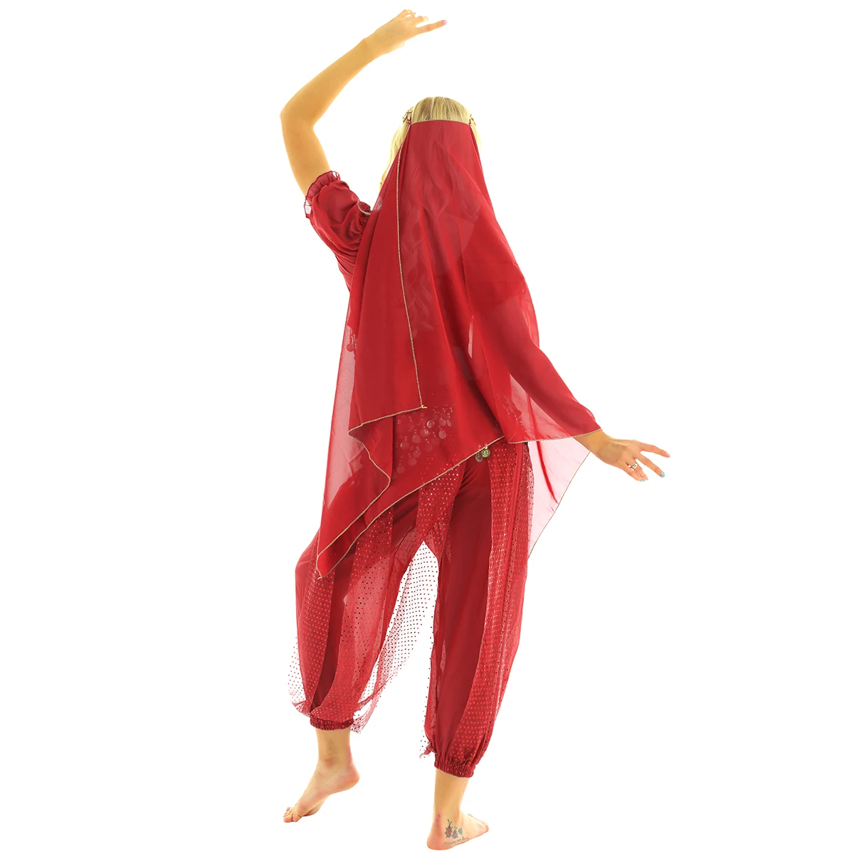 Set Include:1x Top, 1x Harem Pants, 1x Hip Scarf, 1x Head Scarf