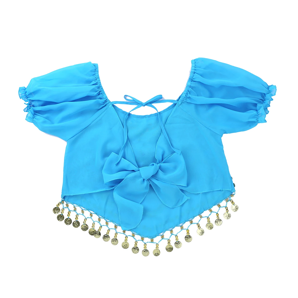 Особенности: Женский костюм для танца живота на Хэллоуин, карнавальный костюм для индийского танца, комплект одежды, мягкая и охлаждающая шифоновая ткань для удобной носки, один размер подходит для большинства. Топ с короткими рукавами с прошитыми бусинами в виде колокольчиков и монет; Дизайн с завязками на спине для лучшей посадки; Штаны-шаровары с эластичным поясом с блестящими блестками и тюлевым накладным слоем; Эластичный вырез для ног. Поставляется с шарфом для головы, который достаточно длинный, чтобы покрыть заднюю часть и Монетный шарфик для украшения, это действительно Забавный шум, который не заставит вас перестать танцевать. Идеально подходит для карнавала, Хэллоуина, косплея, танца живота, дня рождения и нарядов, танцевального шоу, индийских танцевальных представлений и т. д. Перед оформлением заказа ознакомьтесь с таблицей размеров. Ручная и машинная стирка.