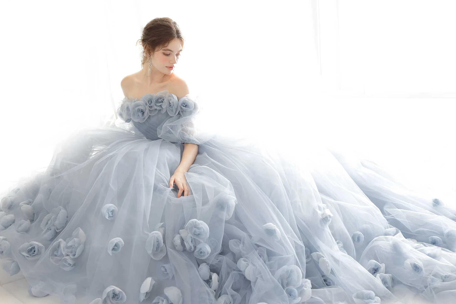 Женское платье с цветочным принтом, синее или серое платье без бретелек, с шлейфом