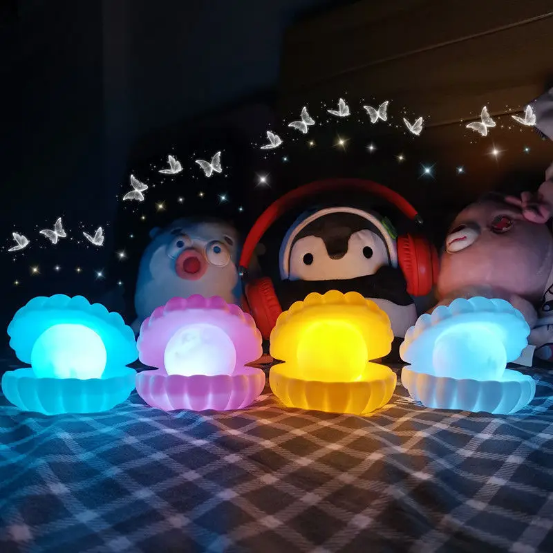Жемчужный ночник в виде ракушки, креативное светильник шение для спальни, лампа для кормления ребенка, светящаяся игрушка для прикроватного столика, украшения дома, 4 цвета