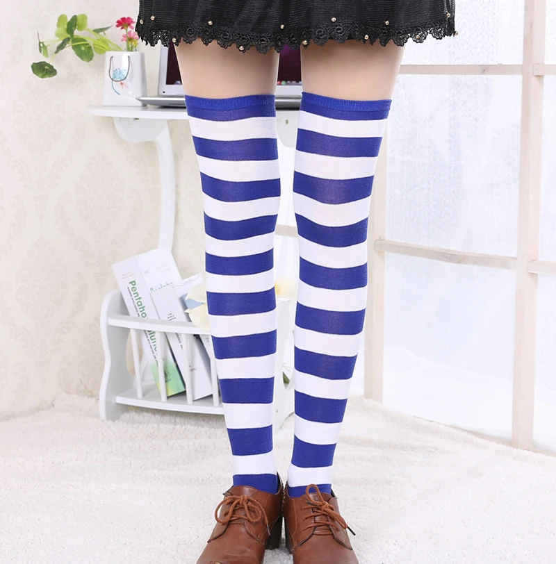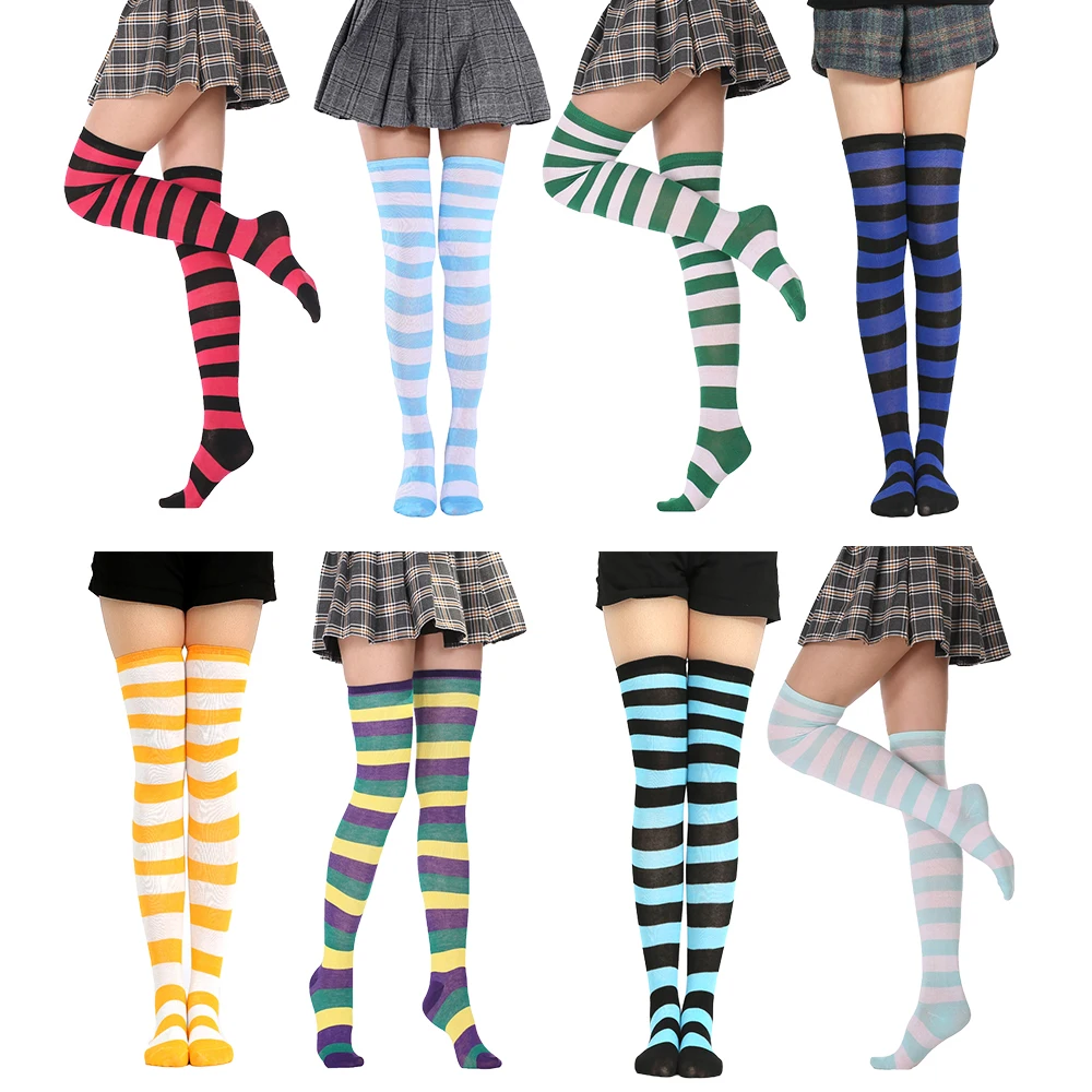 Женские гольфы выше колена, длинные гольфы в полоску, повседневные милые гольфы