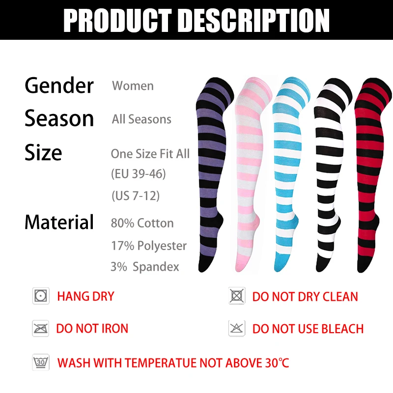 . Полосатые Гольфы выше колена; Длинные женские гетры; Носки. Они очень подходят и удобны, без чувства сдержанности. Сверху есть некоторая эластичность, чтобы предотвратить их падение. Различные способы ношения: как Гольфы выше колена, вы можете носить выше колена, чтобы сохранить колено в тепле; Как гольфы, вы можете носить под коленом, модно и естественно; как свободные носки, вы можете надеть на лодыжку, ленивые и удобные. Материал: 97% хлопок, 3% спандекс (приятный для кожи, плотный и прочный, дышащий и удобный). Размер: США 5-10; Великобритания 4-9; ЕС 35-45 (размер измеряется вручную, Есть погрешность в пределах 3%, пожалуйста, поймите). Применимо: подходит для любого повседневного случая и сезона. Можно сочетать с шортами и мини-юбками, школьными юбками, повседневной одеждой, выступлений на сцене и костюмированных вечеринок. Это также лучший подарок для наших друзей и родственников. Напоминание: машинная стирка, стирка в холодной воде, без отбеливателя