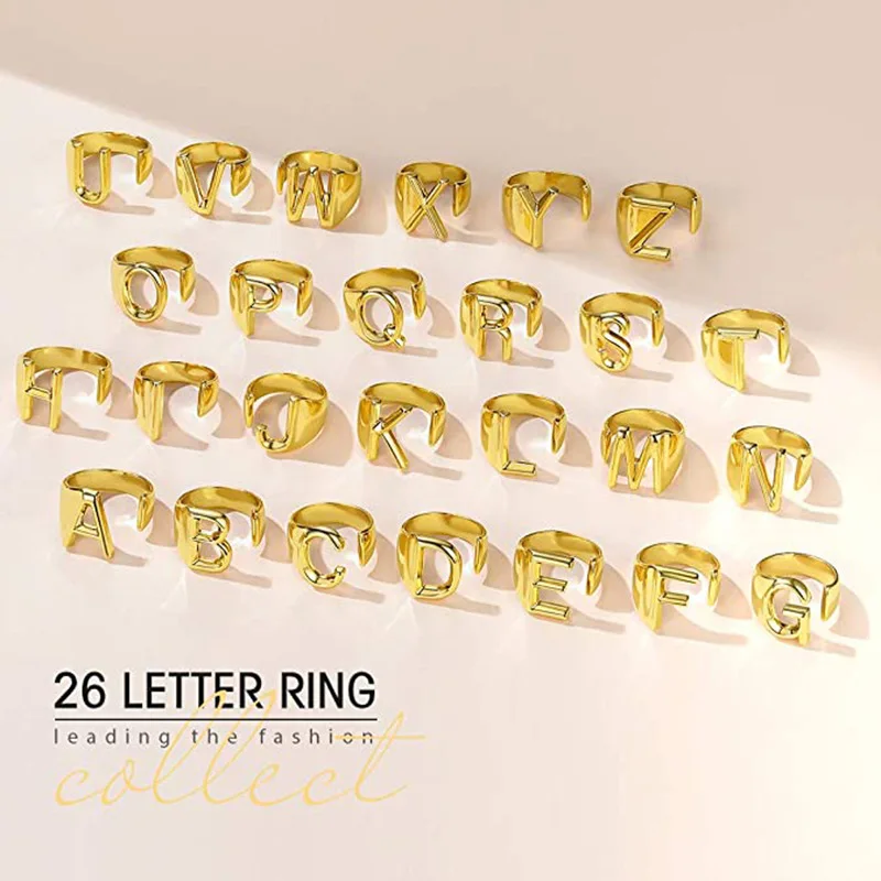 Золотое металлическое регулируемое Открытое кольцо с буквами AZ 26, творческое кольцо с буквами мисс инициала, модное вечернее Ювелирное Украшение
