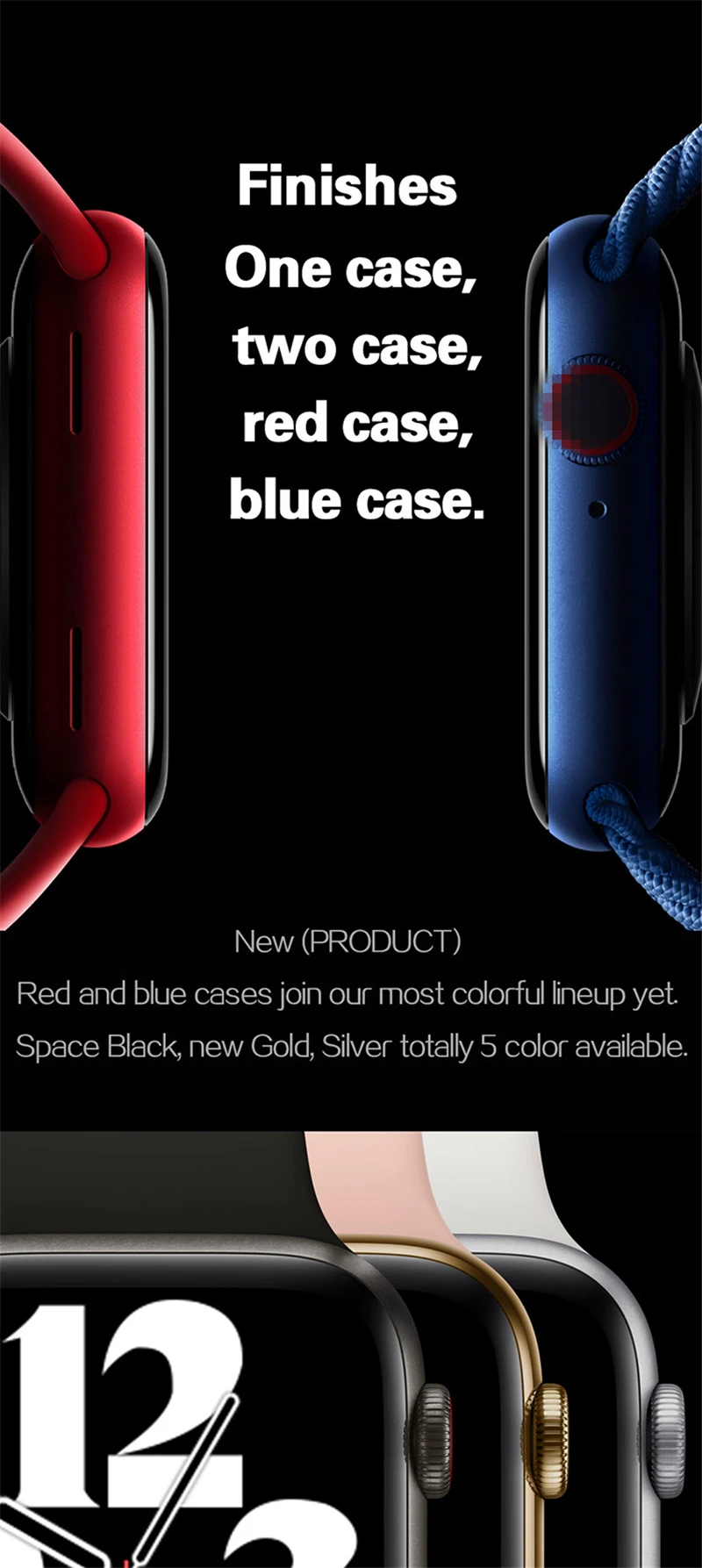 2. Цвет часов: черный, серебристый, розовый, синий, красный