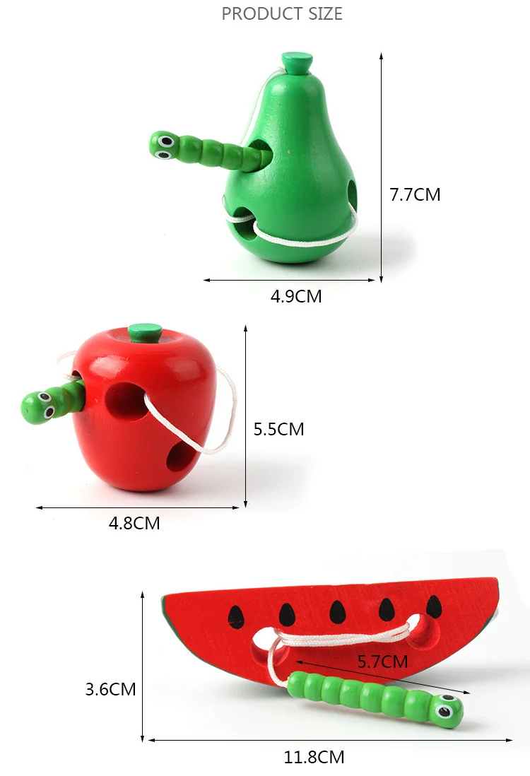 Детский деревянный пазл, червь, съесть фрукты, яблоко, груша, забавные деревянные игрушки-нитки, развивающие игрушки Монтессори для детей