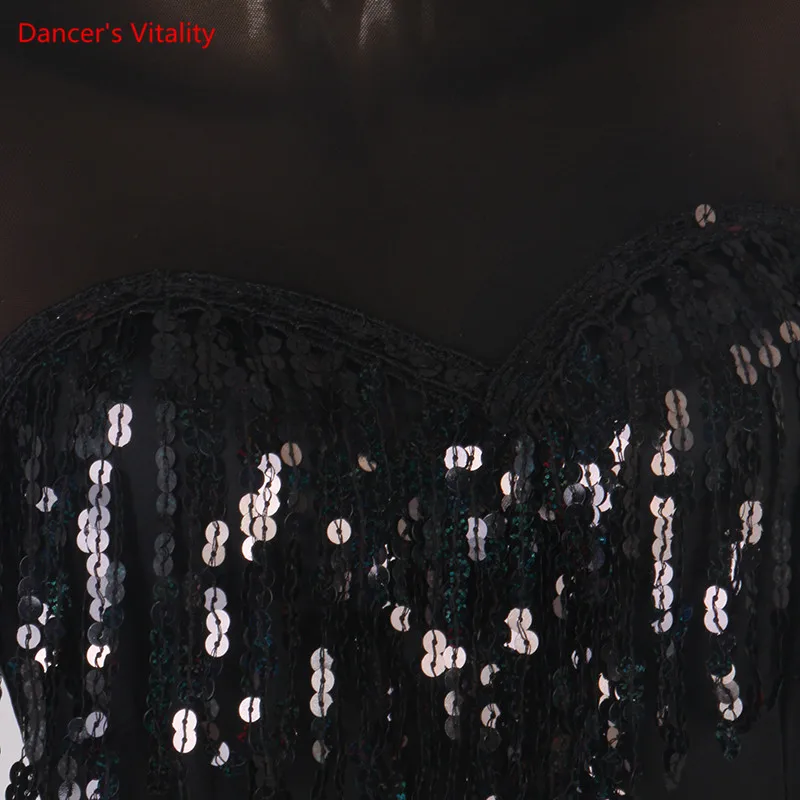 Новое платье для латинских танцев блестящее черное платье для латин...
