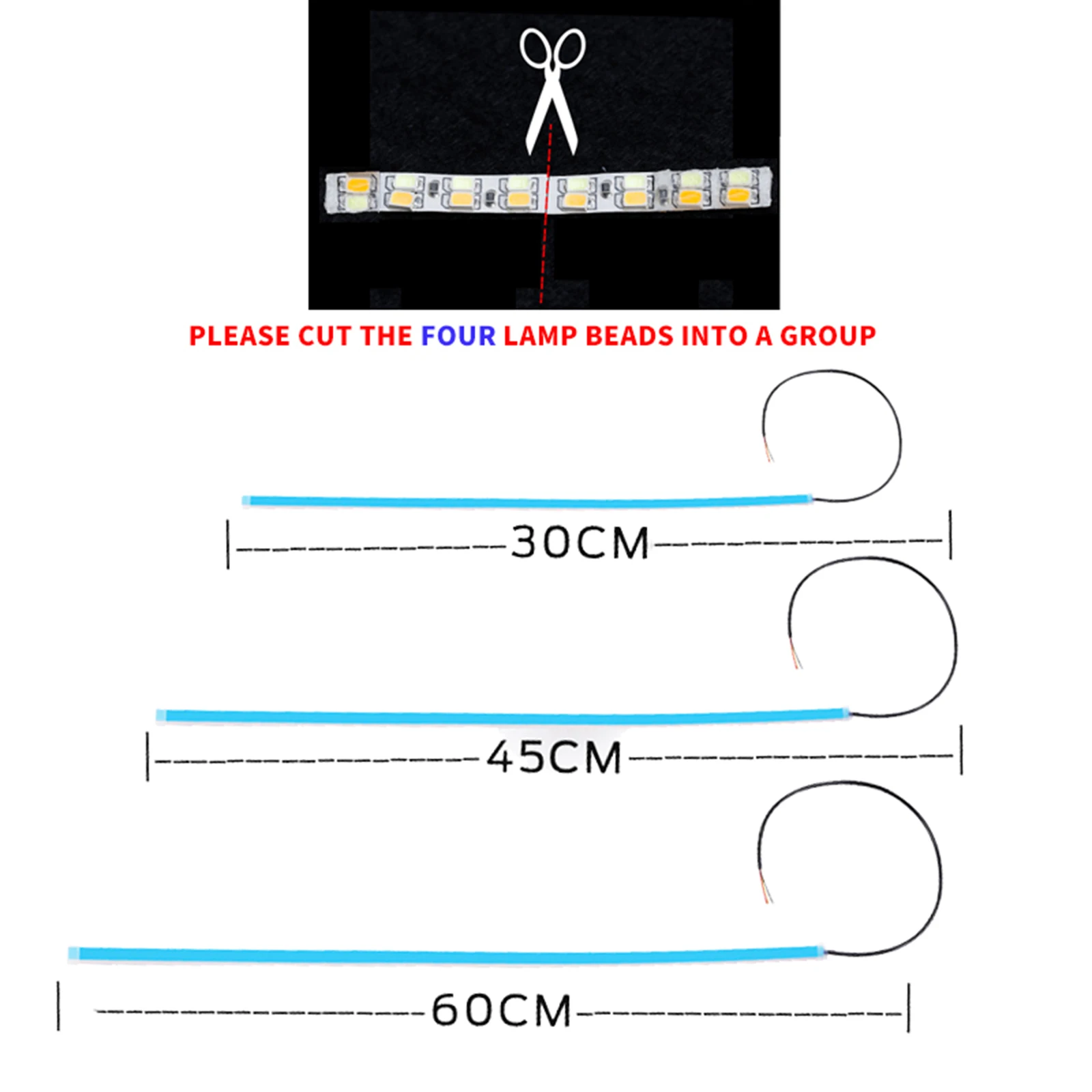 Дневные ходовые огни светодиодсветодиодный, 2 шт., 12 В, гибкая водонепроницаемая лента