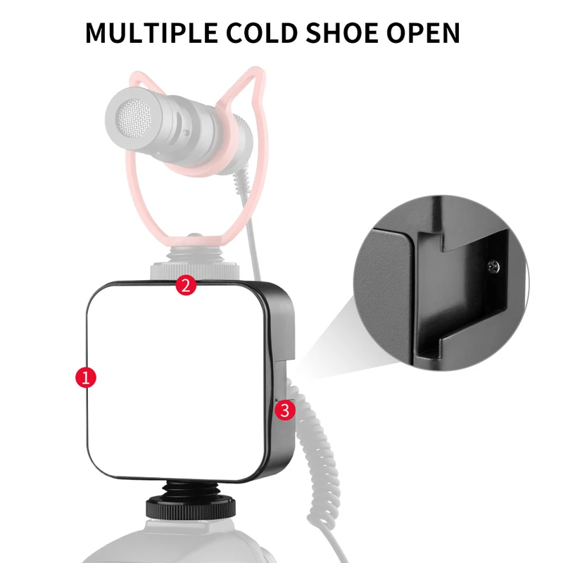 1. Параметры продукта2. Количество СВЕТОДИОДНЫЙ одов: 49 шт.3. Мощность: 5 Вт4. Источник питания: батарея № 55. Цветовая температура: 6500 К6. Яркость: 800 лм7. Режим затемнения: тип кнопки8. Размер: 81*66*27 мм9. Вес нетто: 63 г Особенности:1. Мягсветильник, лампы высокого качества,2. Хорошая цветопередача, универсальная популярная обувь3. Легко носить с собой, долгий срок службы4. Количество светодиодов: 49 шт.5. Точная цветовая температура, равномерное освещение, длительный срок службы лампочек.6. Импортный экологически чистый пластиковый корпус, небольшой размер светильник вес, удобство переноски7. Аккумулятор для обеспечения высокой мощности. Использование батареи № 5 для обеспечения высокой мощности, очень удобное использование на открытом воздухе. Примечание: товар без батареи, его следует покупать отдельно8. Используйте на верхней части машины, используйте кронштейн для достижения различных комбинаций яркости, а также используйте более гибкий и удобный.9. Регулировка яркости кнопок, свободное управление.10. В зависимости от условий съемки можно свободно регулировать свет.11. Мягсветильник, стабильный цвет на выходе, насыщенный цвет, ближе к основному цвету