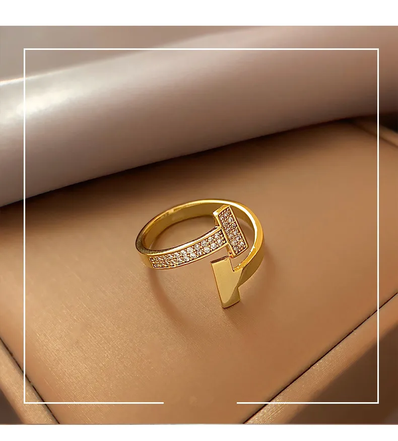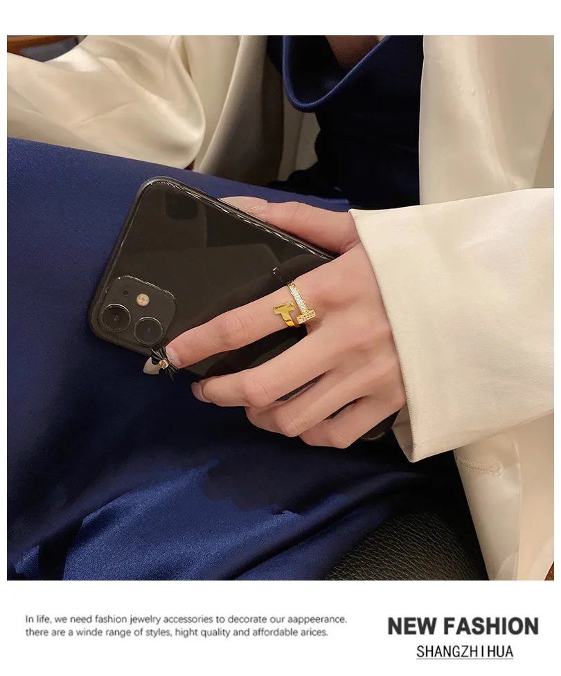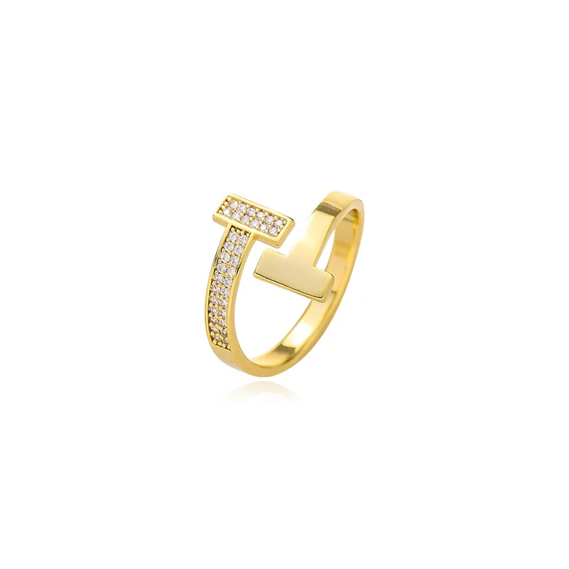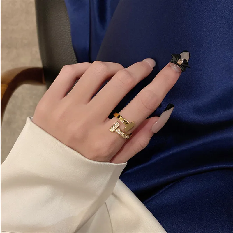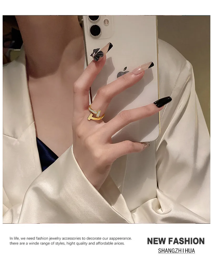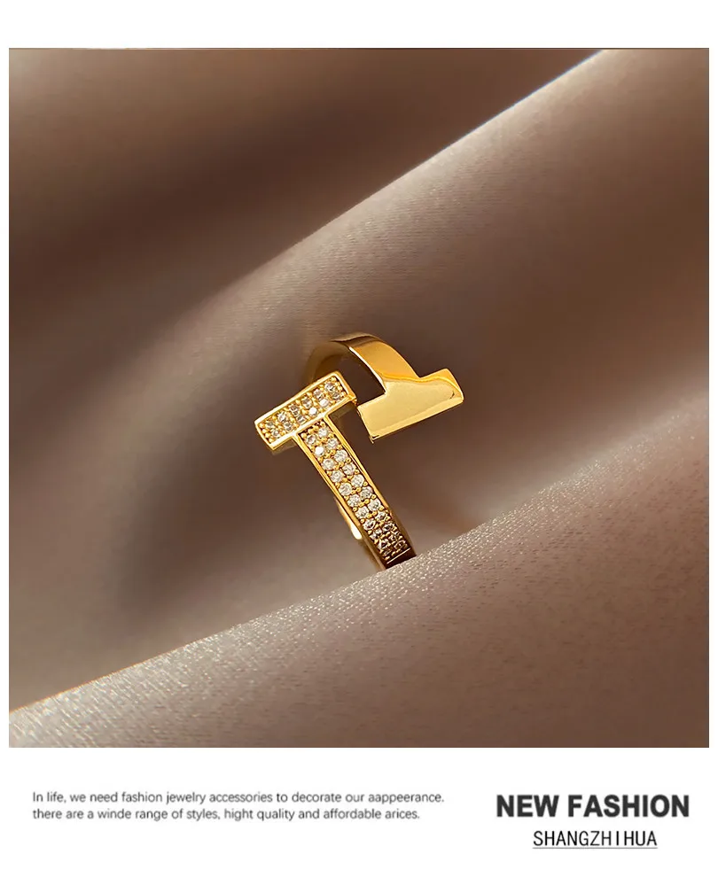 SHANGZHIHUA классическое простое роскошное открытое регулируемое кольцо с буквой T из циркония для женщин роскошное необычное вечерние чное ювелирное изделие в подарок