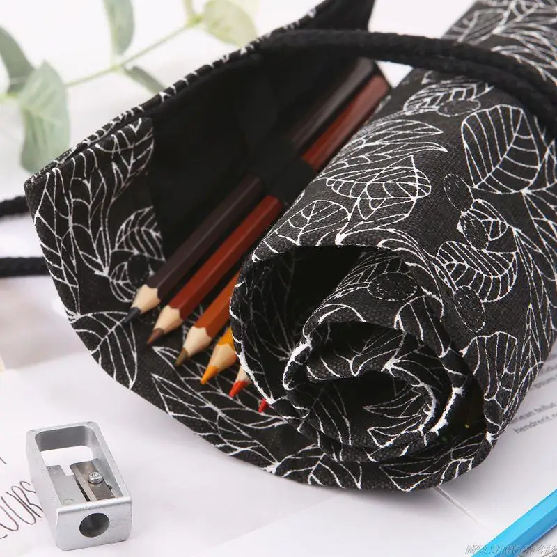 1224364872 отверстия холст школьный пенал Чехол Roll Up Карандаш Че...