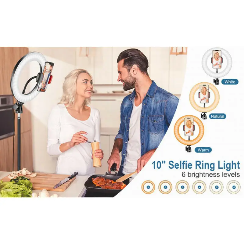 Светодиодный кольцевой светильник 10 дюймов, лампа для селфи со штативом и пультом дистанционного управления, с держателем для телефона, со штативом