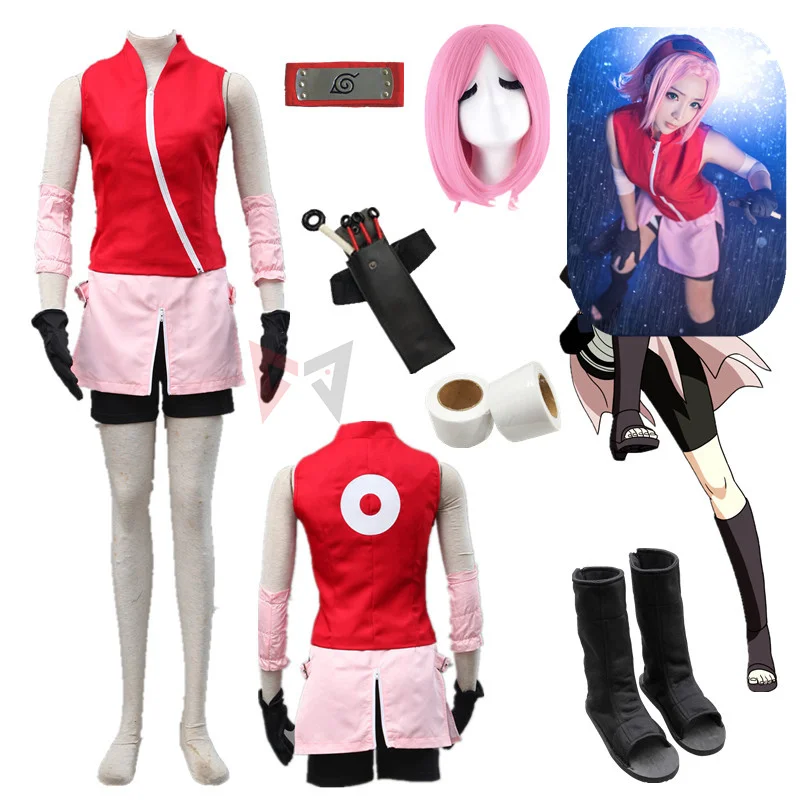 Косплей Костюм Сакура из аниме шипудэн Харуно костюм рубашка шорты перчатки юбка искусственный парик комплект для Хэллоуина для девочек женщин детей