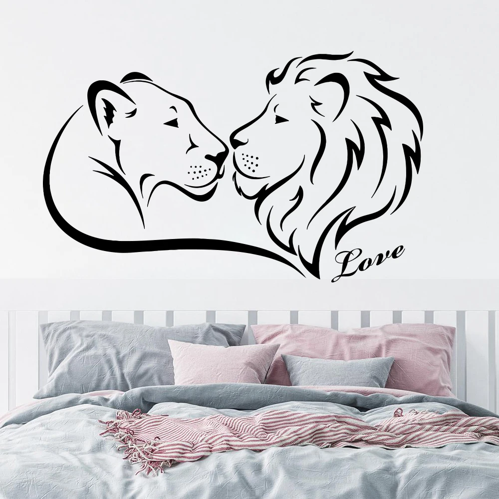 Большая свадебная Настенная Наклейка с изображением короля льва, поцелуя, спальни, дивана, пары, Африканские животные, Лев, стикер на стены любовь, виниловый домашний декор
