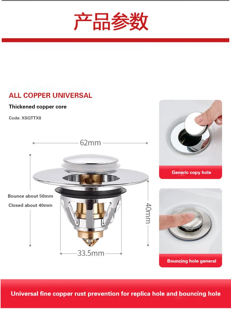 Универсальный медный выдвижной фильтр для слива раковины с эффектом...