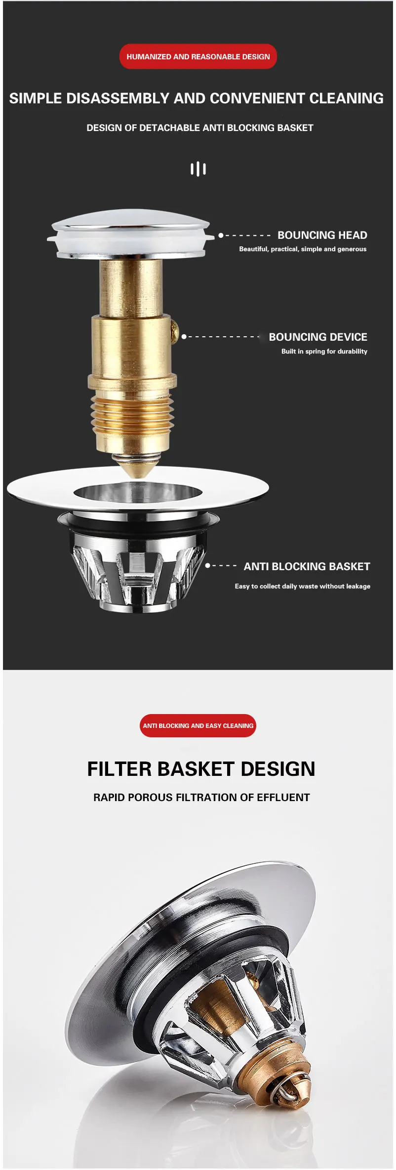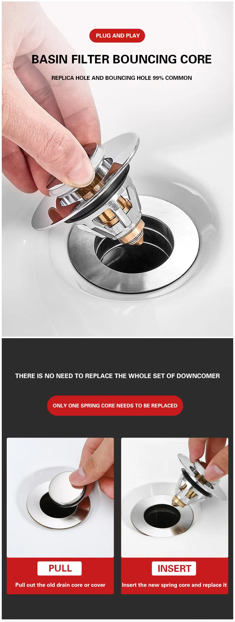 Отскок сердечника выдвижной фильтр для слива ванной комнаты из нержавеющей стали отскок сердечник с эффектом пуш-типа Пробка Для Волос Выдвижной фильтр для слива раковины