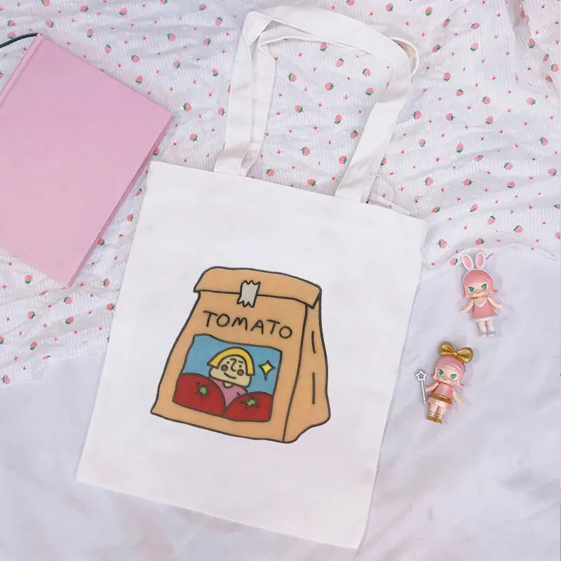 2021 летние женские сумки, холщовая Милая забавная вместительная повседневная женская сумка с томатным принтом, милые сумки на плечо в стиле Харадзюку ольччан