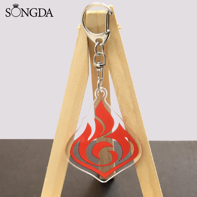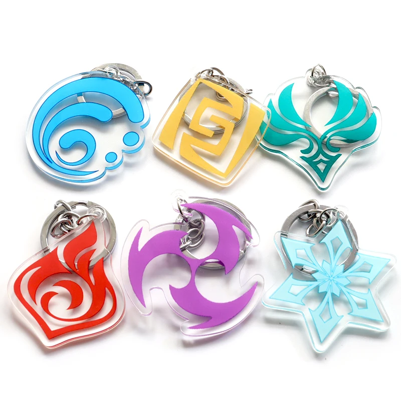 Новый акриловый брелок с эффектом воздействия богий глаз Genshin, двухсторонний брелок для ключей унисекс с изображением воды, ветра, молнии, огня, скалы, льда, украшения