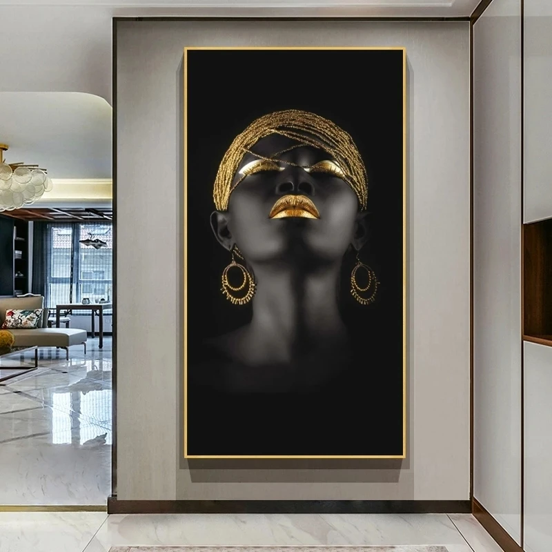 Картина с изображением Африканской женщины, настенные картины, художественные плакаты и принты, черные руки, золотые украшения, холст, домашний декор