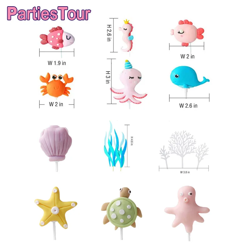 Макарун, краб, осьминог, морская лошадь, рыба, Русалка, торт, топперы, милая морская модель для русалки, день рождения, фотосессия