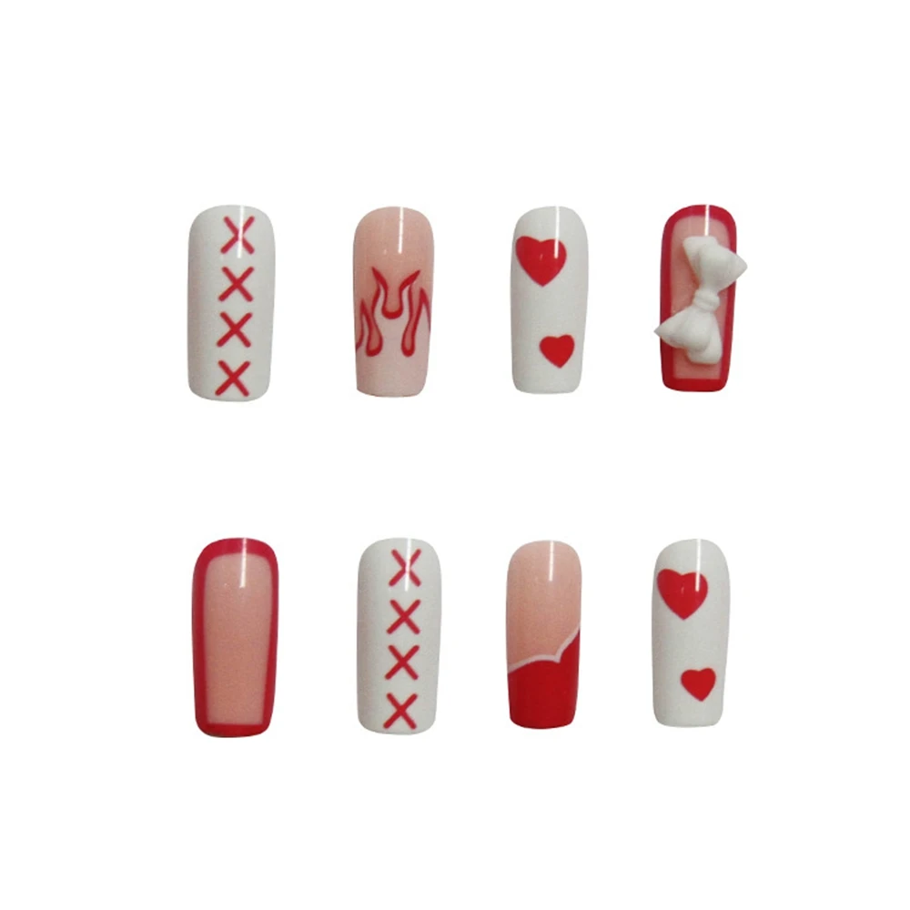 24 шт.кор. французские элегантные накладные ногти с пламенным дизай...