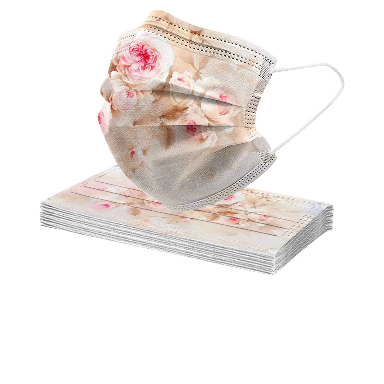 50 шт взрослые ежедневно красивые цветочные принты 3-слойная одноразовая маска для лица