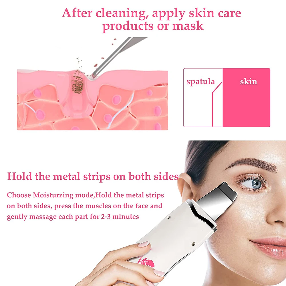 Ультразвуковое высокочастотное колебание используется для мгновенного распыления воды, а распыленная вода проникает в глубокий слой кожи для удаления грязи и регулировки баланса воды и масла, для достижения эффекта очистки засоренных пор, удаления черных точек и очищения кожи.