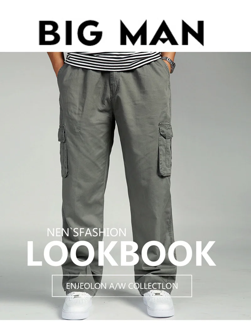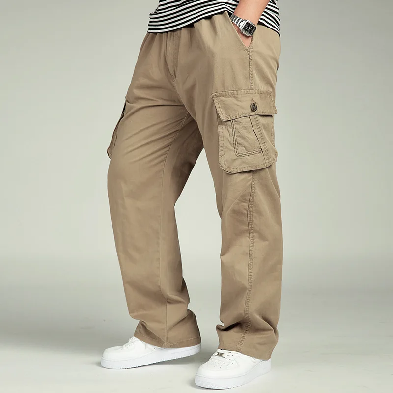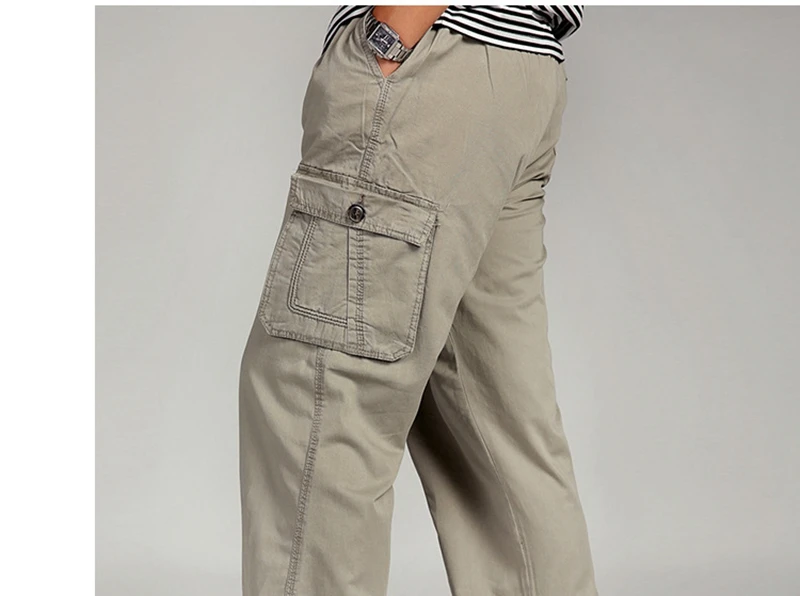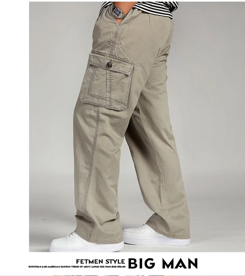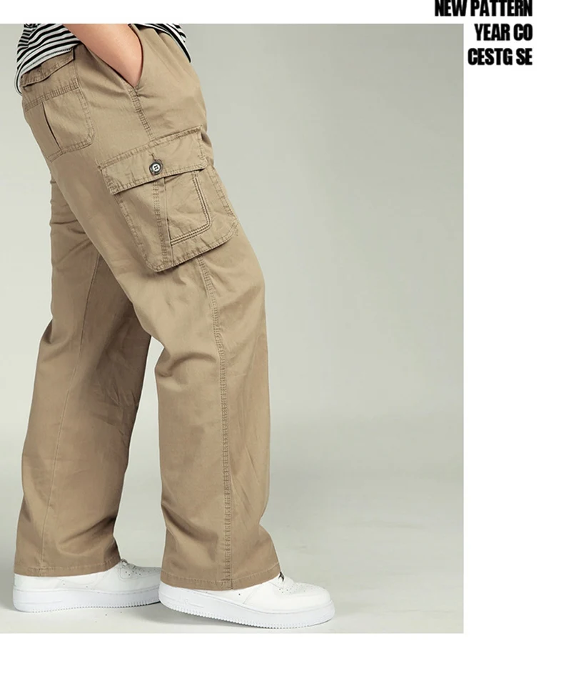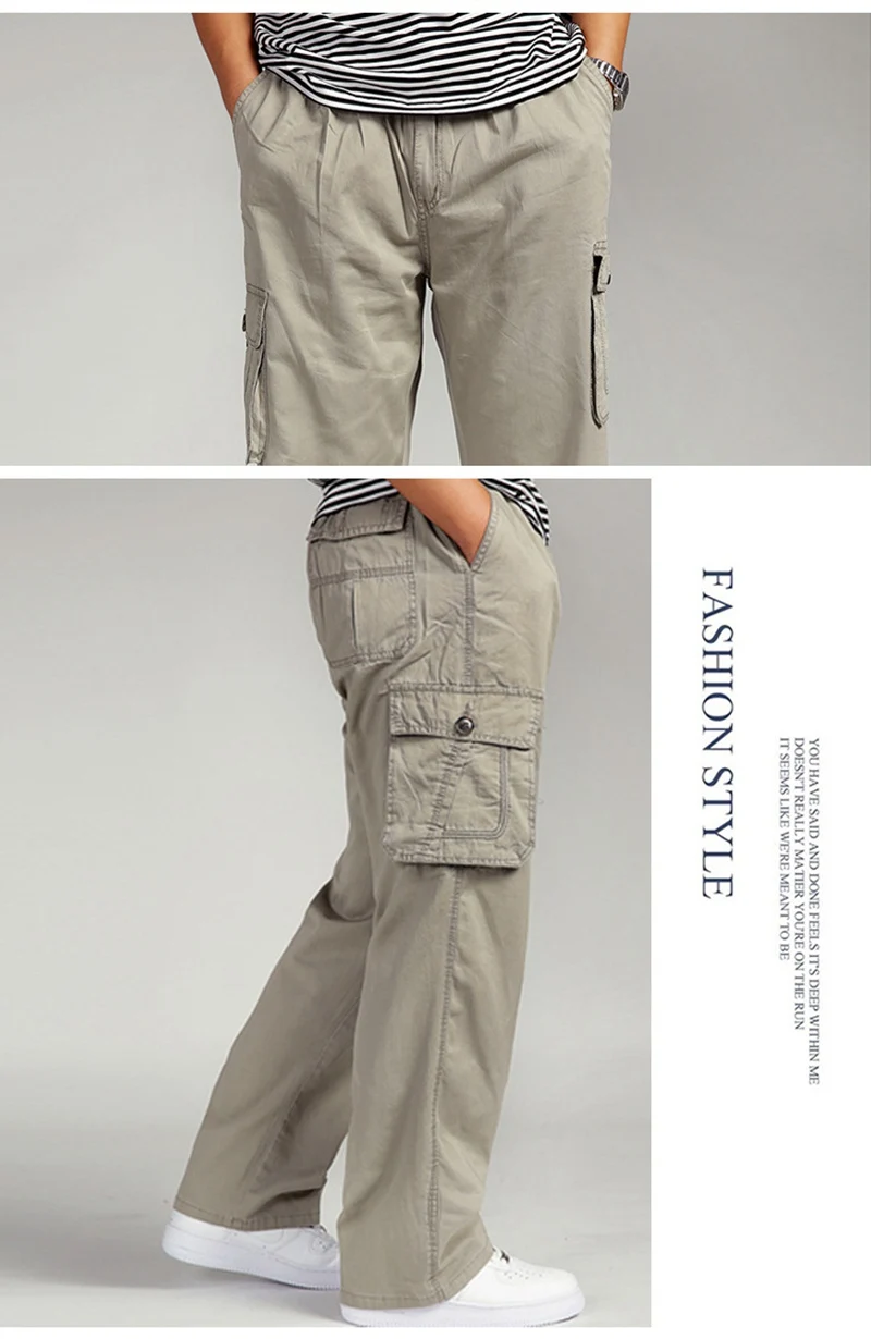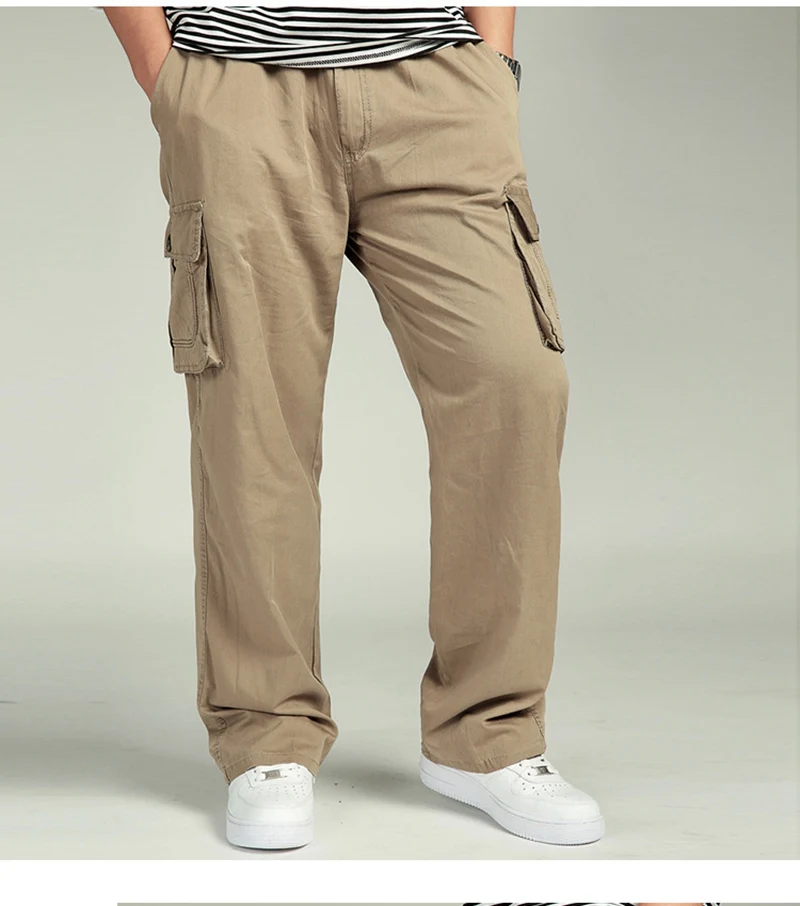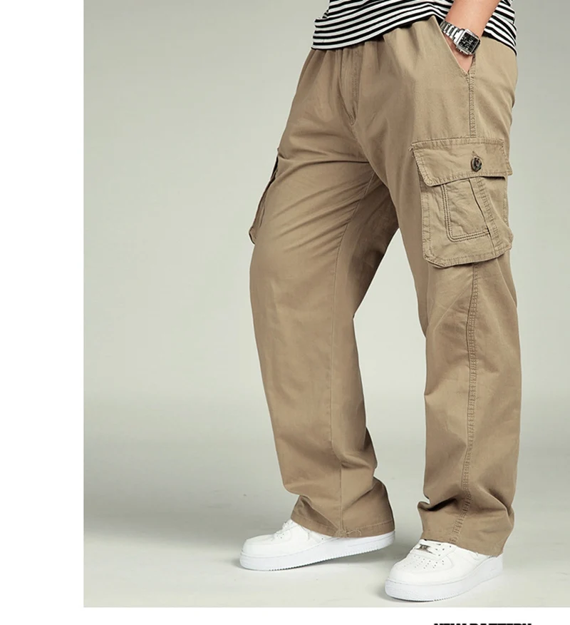 Мужские повседневные брюки цвета хаки Брюки с несколькими карманами Длинные Мешковатые прямые мужские свободные брюки размера плюс XL-6XL брюки карго для весны и осени