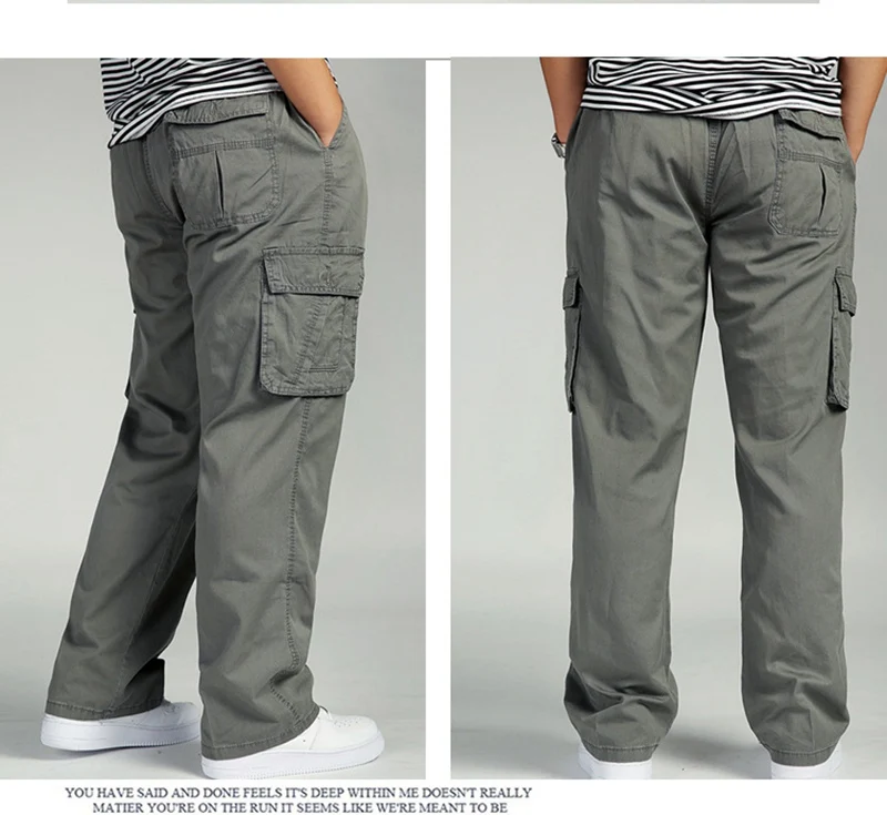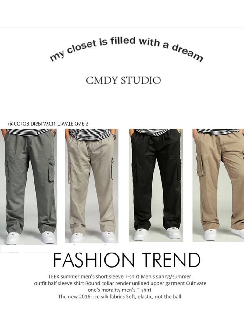 Мужские повседневные брюки цвета хаки, брюки со множеством карманов, длинные мешковатые прямые мужские свободные бриджи, мужские брюки для весны и осени