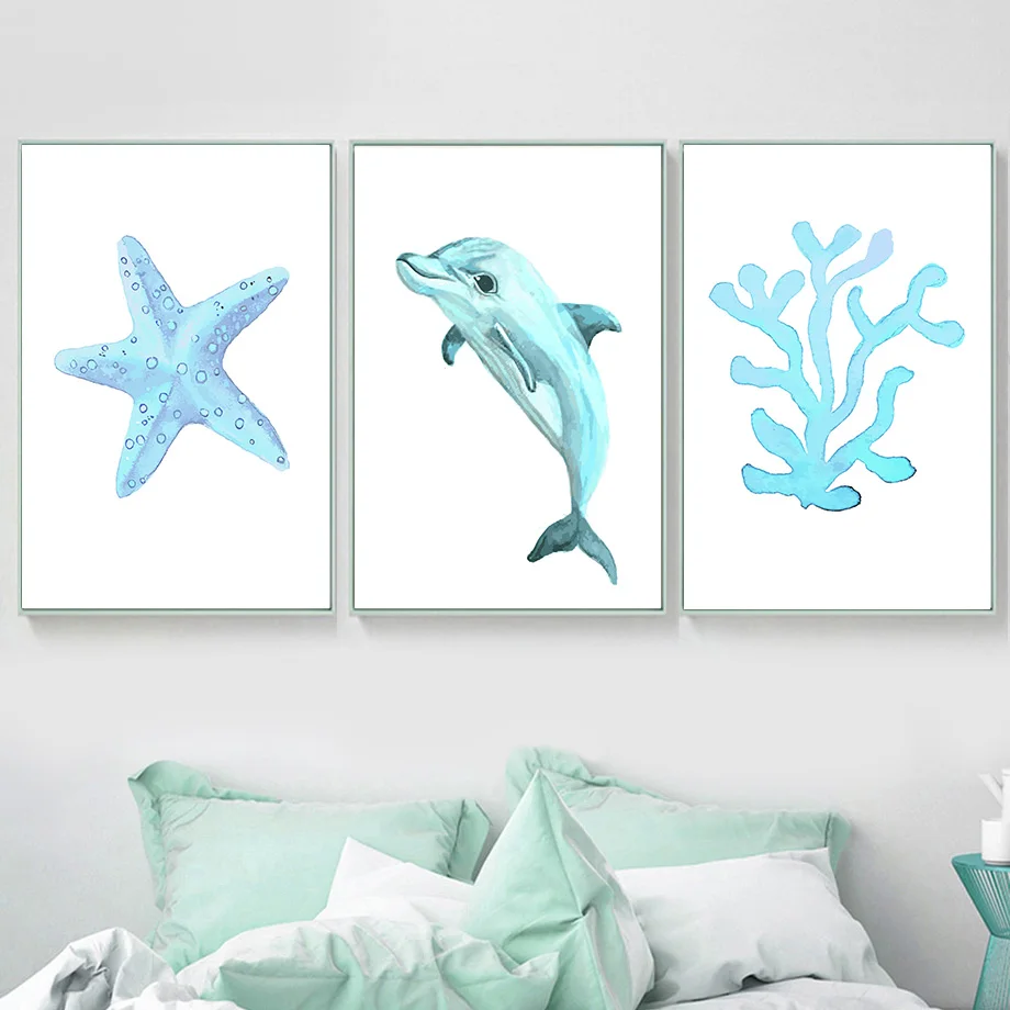Настенная картина для детской комнаты, рисунок КИТ, Дельфина, морской лошади, черепахи, морепродуктов, скандинавские постеры для декорирования стен в детской комнате