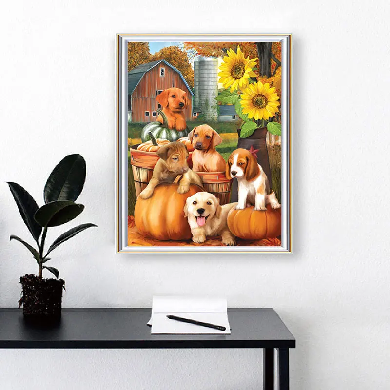 Полноразмерная алмазная живопись собака и кошка, алмазная вышивка, Подсолнухи, тыквы, вышивка крестиком, украшение для дома