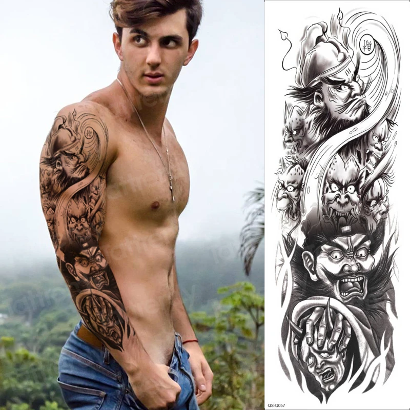 Временные мужские татуировки с длинным рукавом, большой рукав, тату...