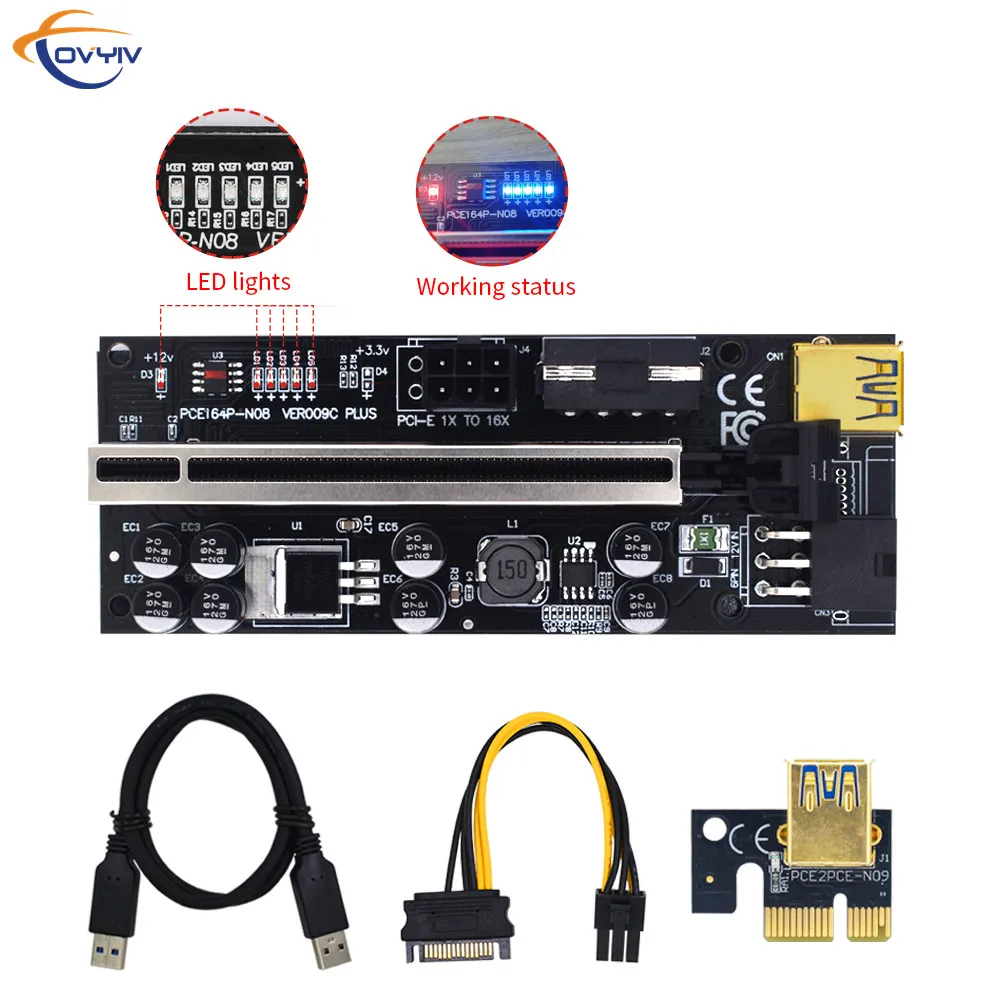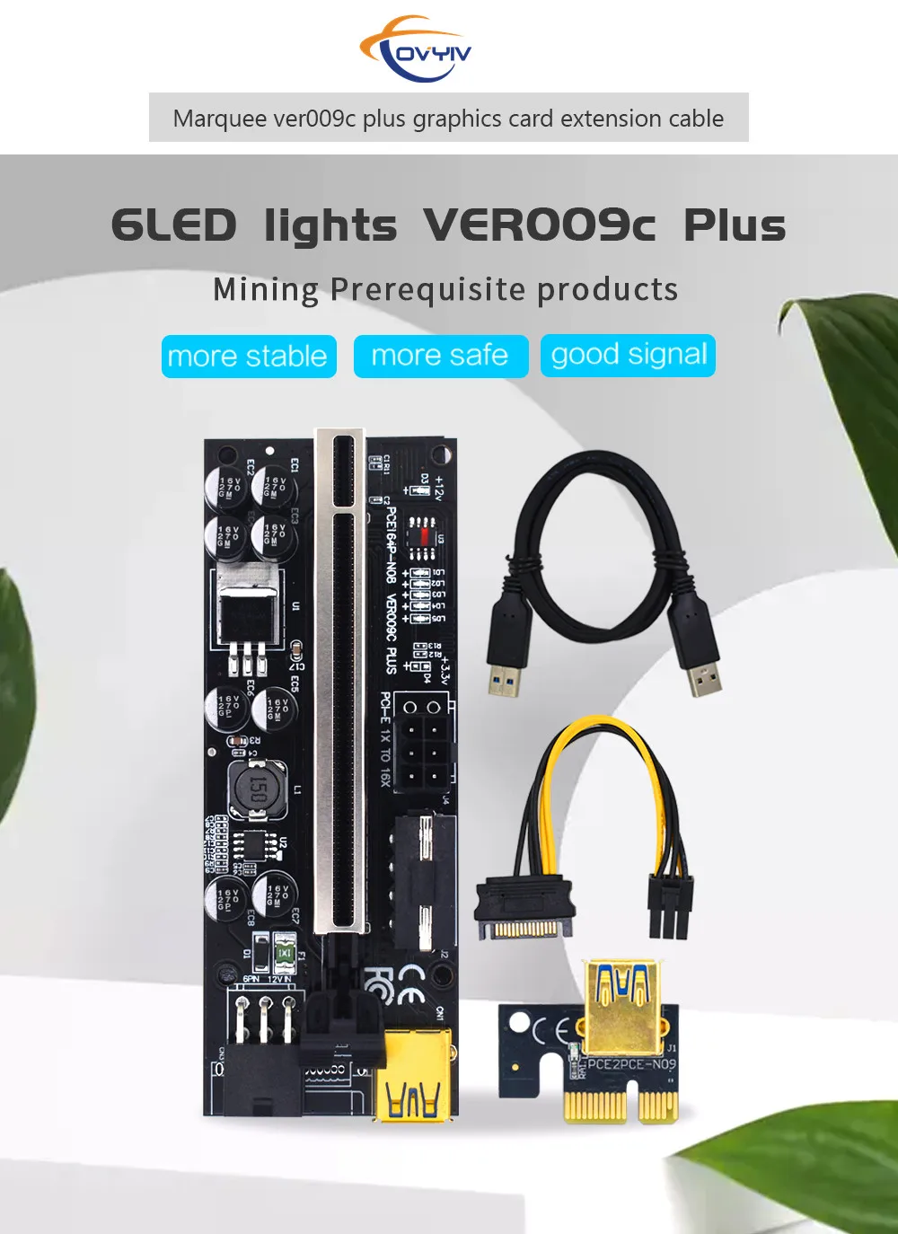 10 шт. COVYIV 009s 009C 009S Plus PCI E Райзер-карта PCI-EPCIE USB 3,0 до 6 контактов адаптер кабель Майнинг Райзер для видеокарты