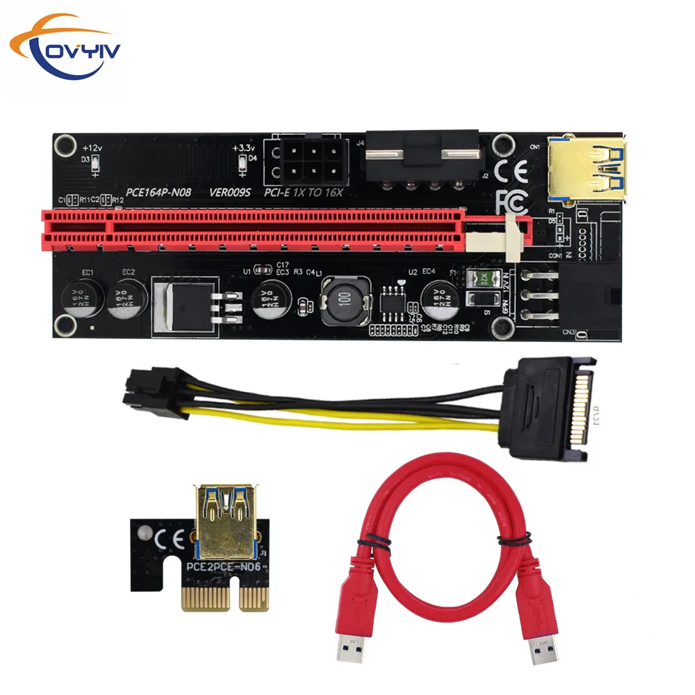 10 шт. COVYIV 009s 009C 009S Plus PCI E расширитель Riser Card PCI-E/PCIE USB 3,0 до 6pin Кабель-адаптер для майнинга для видеокарты