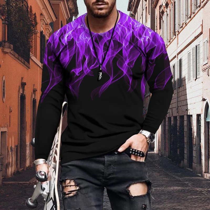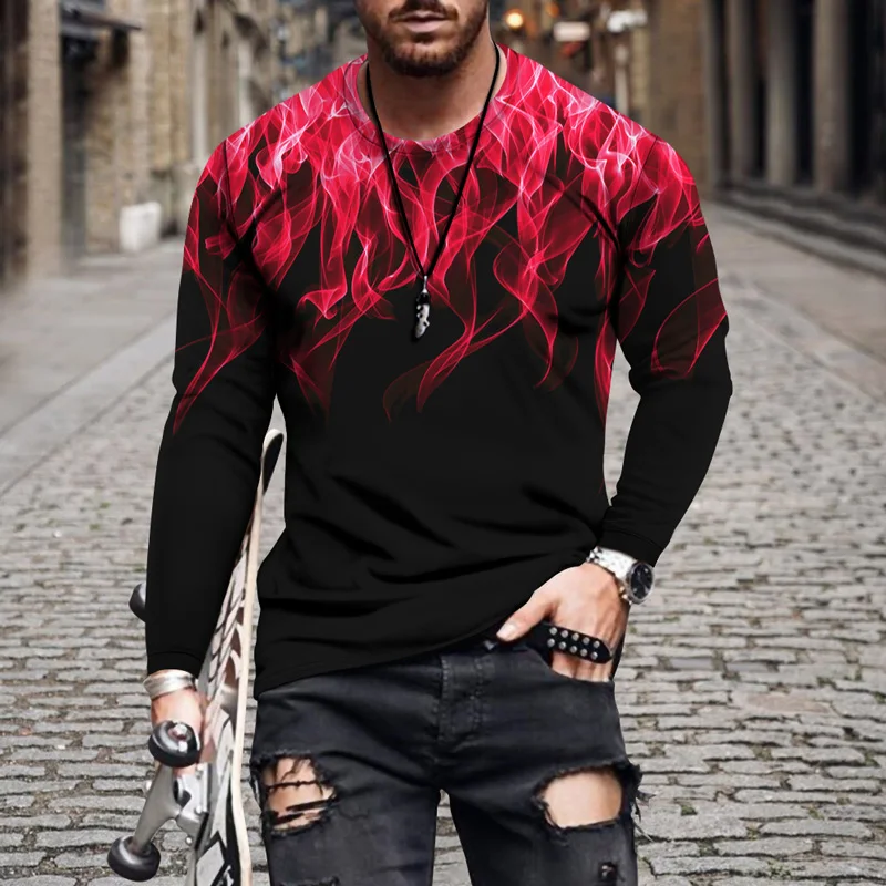 Мужская футболка с длинным рукавом, круглым вырезом и 3D-принтом