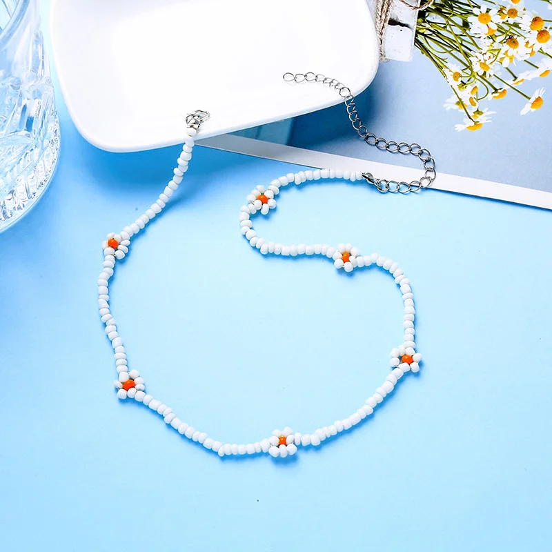 Ожерелье женское на шею, с семенами маргариток, ручной работы
