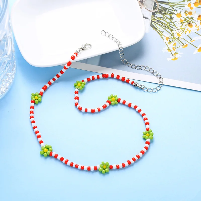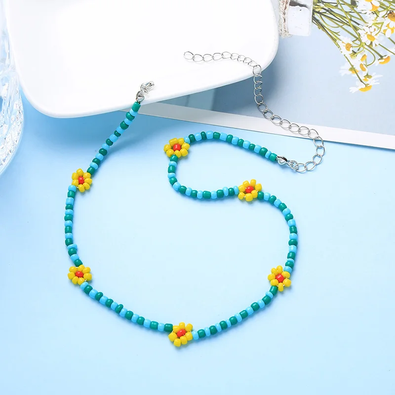 Модное роскошное ожерелье с цепочкой из бисера с цветами для женщин...