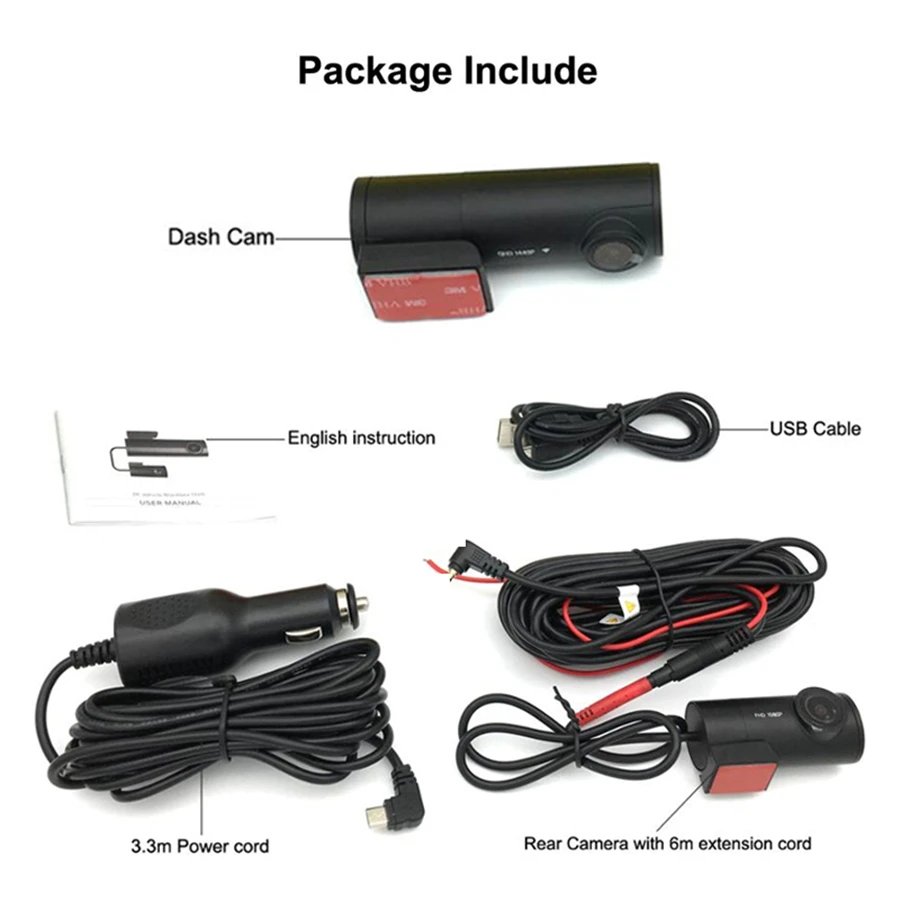 Автомобильный видеорегистратор с двумя камерами, разрешение 1440P, HD, Wi-Fi, GPS