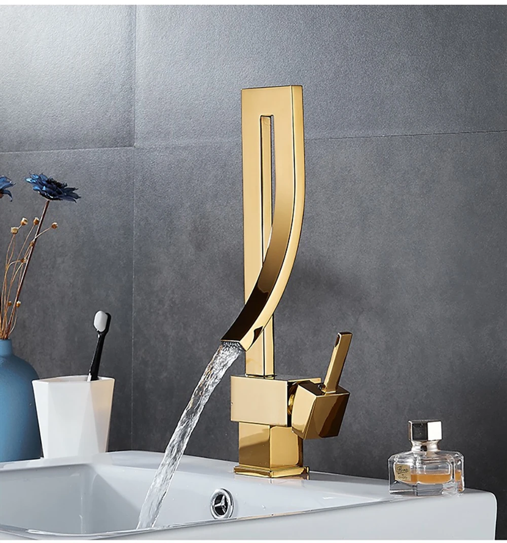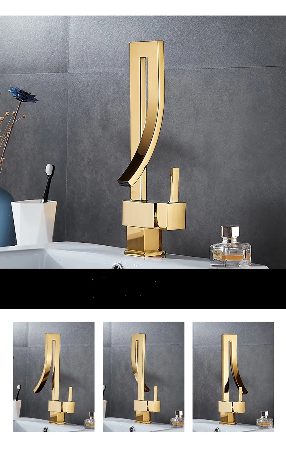 Смесители для раковины, золотой Латунный смеситель, квадратный смес...