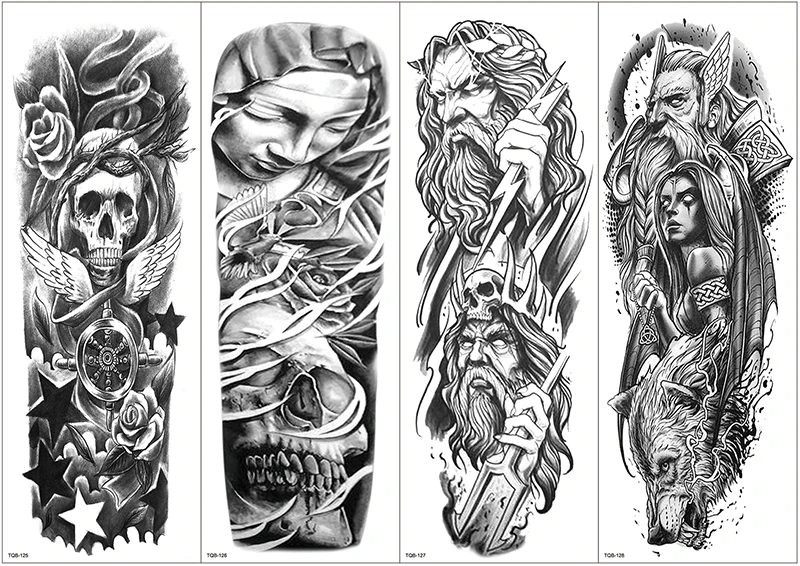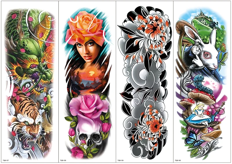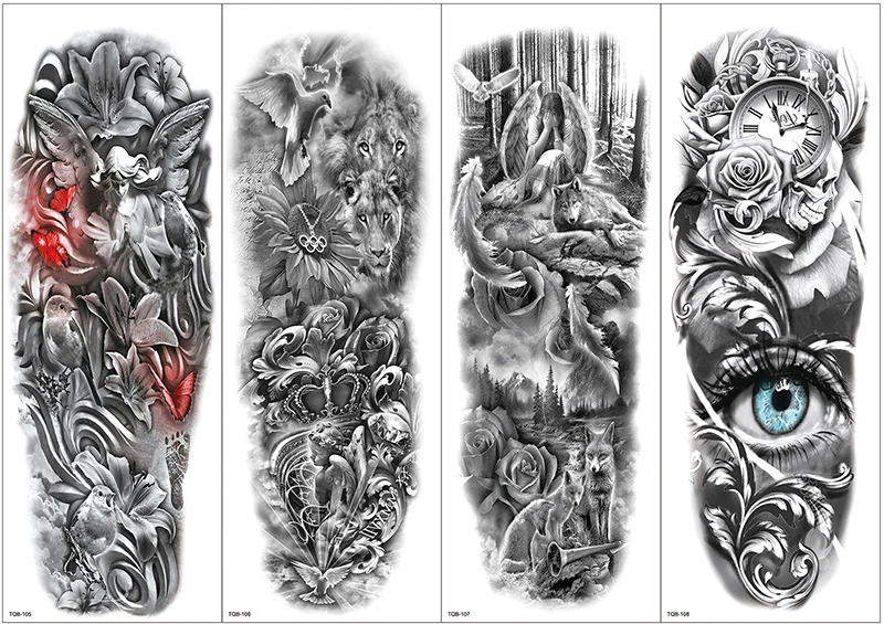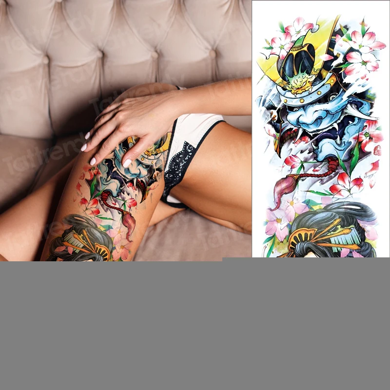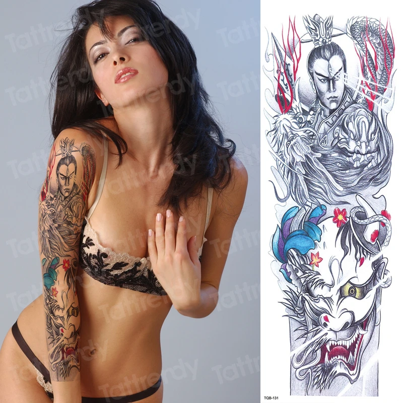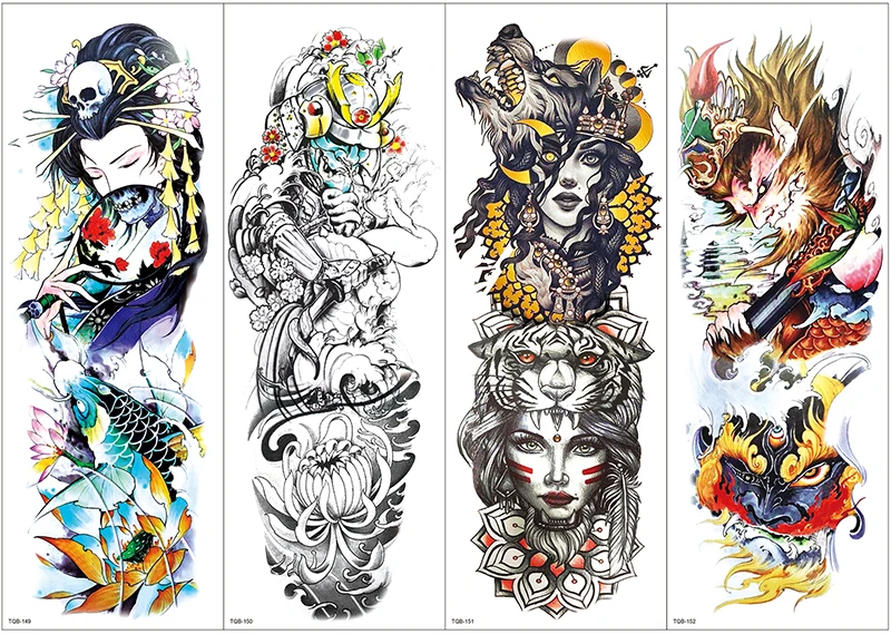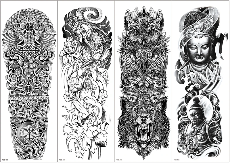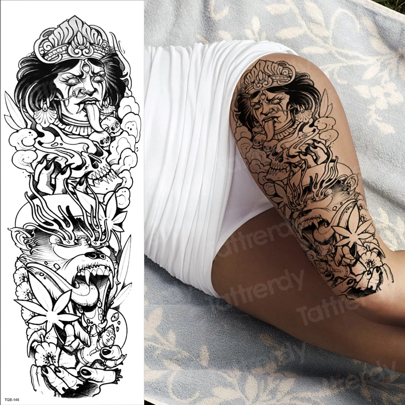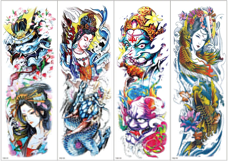 Большой рукав, татуировка, временная водостойкая татуировка для ног, акварель, этническая рыба, Китайский рисунок, татуировка, длинный рукав, большой
