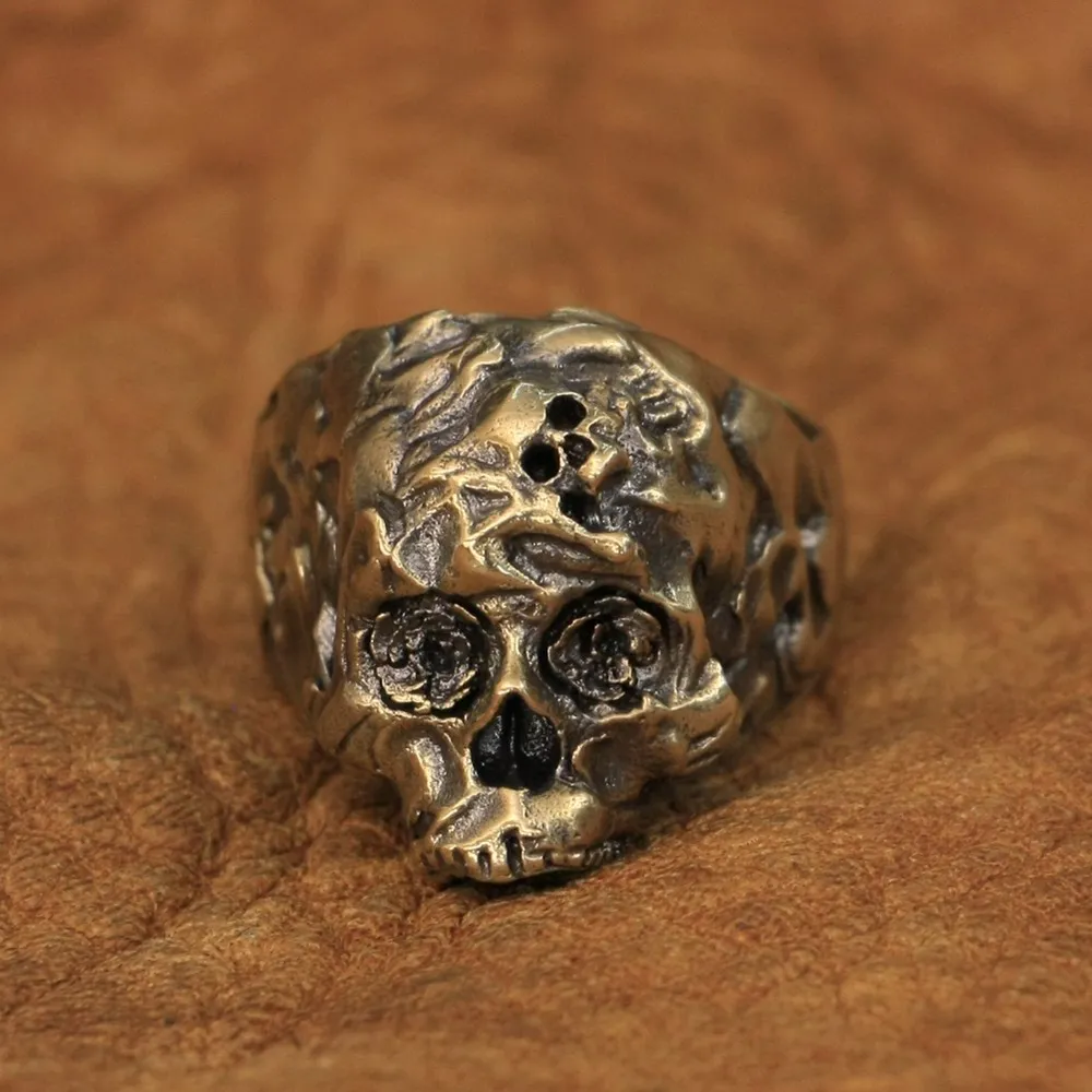 LINSION детали латунное кольцо с розовым черепом мужское байкерское панковое кольцо BR280 американский размер 7 15