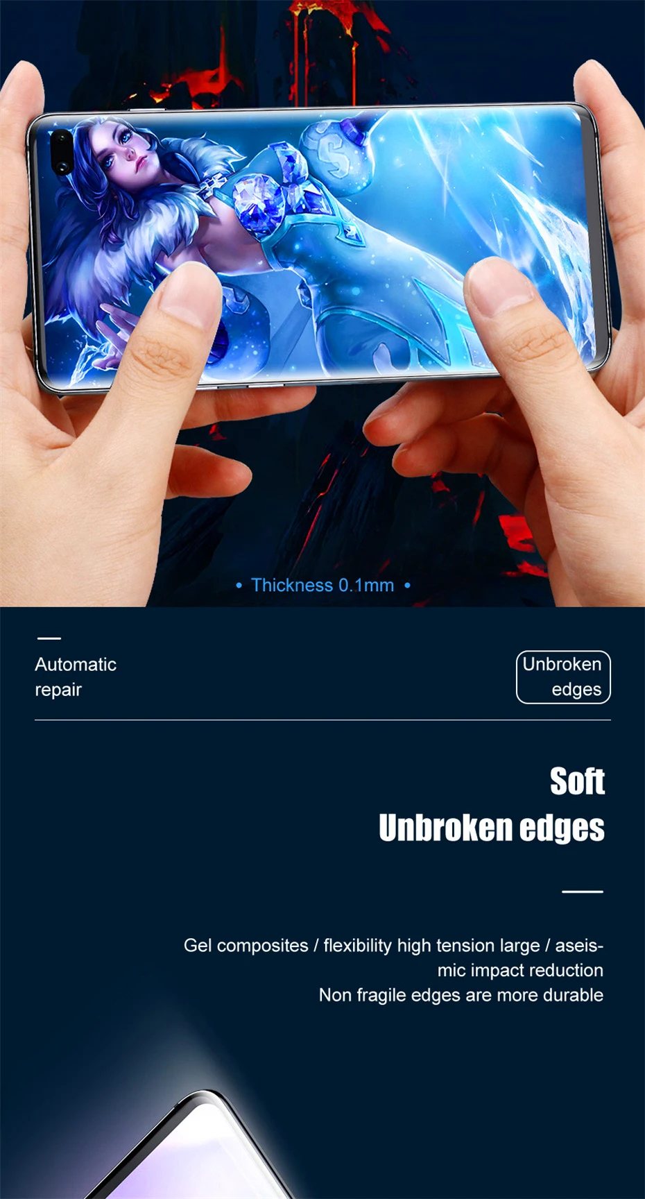 Я не думаю, что мне понравится, но он такой крутой, что совсем не ощущается. Внизу не хватает 2 миллиметров для полного закрытия стекла. Слегка царапается по бокам. Это Гелевая пленка, а не стекло. Для тех, у кого острые ногти, точно не подходят. Хорошо, что в комплекте 4 штуки, они легко рвутся. Отпечаток пальца работает без проблем. На Samsung Note 10 + я рекомендую.