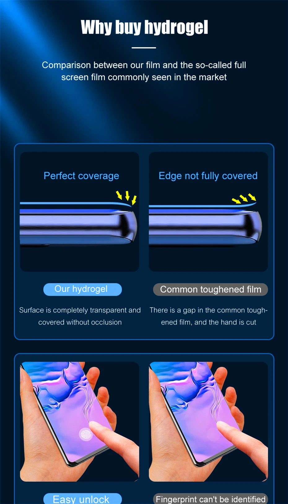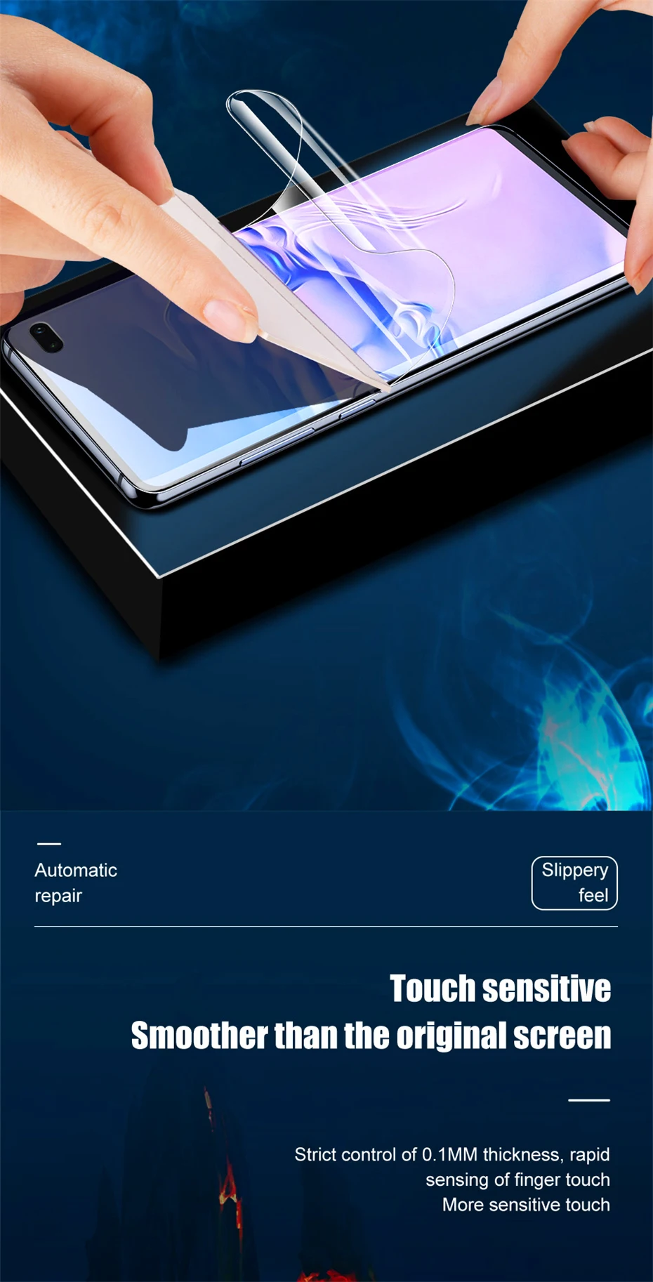 Особенности и характеристики:-Передняя и задняя водная Конденсационная пленка, защищенная вместе-Можно наклеивать повторно, использовать после выравнивания отверстий-Полностью покрытая Гидрогелевая пленка обеспечивает высокую защиту вашего экрана.-Гидрофобное и олеофобное покрытие защищает ваш телефон от пятен, таких как масло, отпечатки пальцев и т. д.-Супертонкий и прозрачный дизайн гарантирует HD просмотр.-Высокая чувствительность и отклик, как и оригинальный экранРуководство по установке:1. Очистите экран влажной и сухой тканью, а затем используйте средство для удаления пыли2. Поместите протектор экрана в экран и правильно Зафиксируйте протектор экрана3. Используйте карту, чтобы вытолкнуть защитную пленку!4. Используйте карты для идеальной обработки кромок!Список товаров:1x 999D Гидрогелевая пленка для SAMSUNG1 х чистящий костюм1 x карта