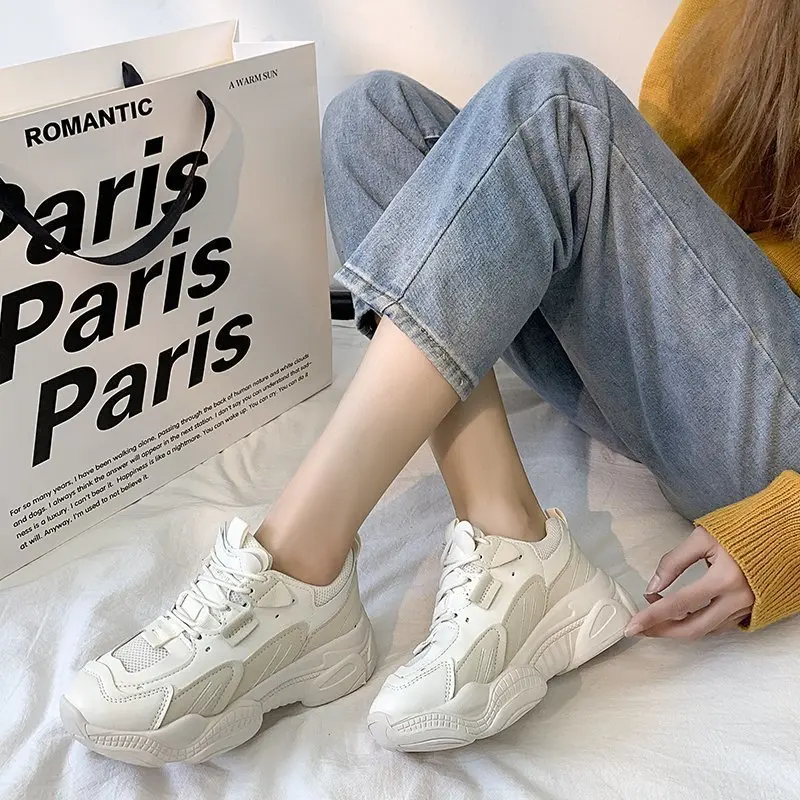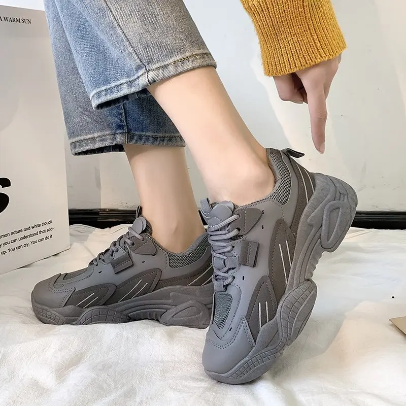 Кроссовки женские массивные на платформе, Вулканизированная подошва, на шнуровке, Повседневная Удобная обувь, весна-осень