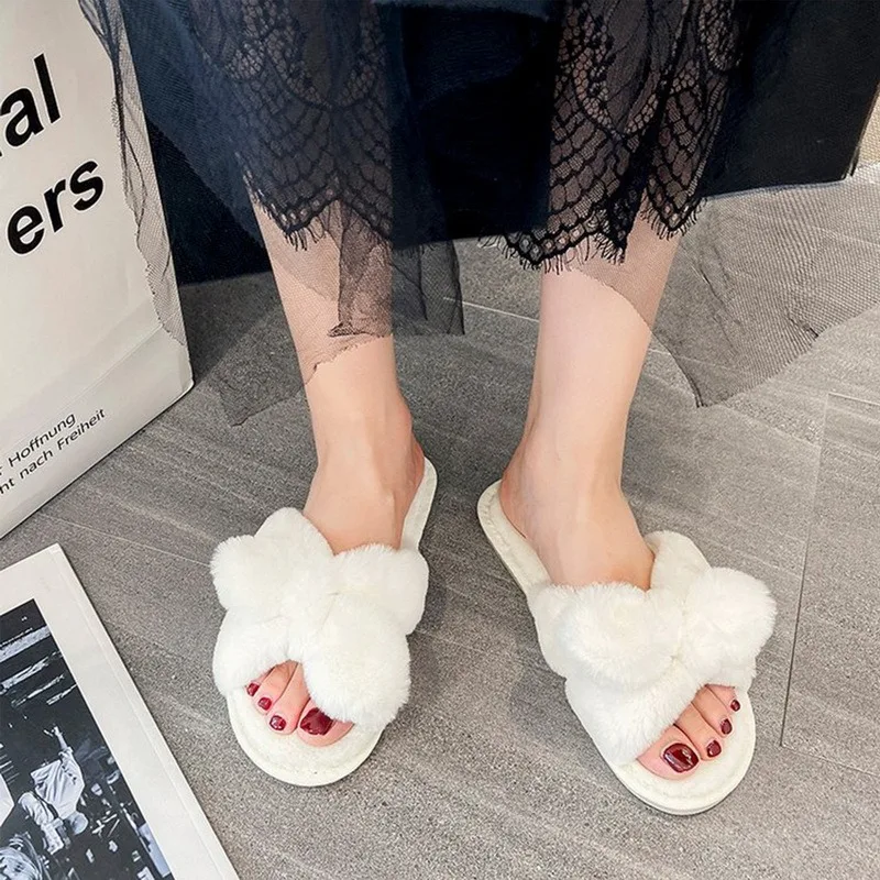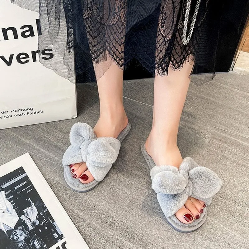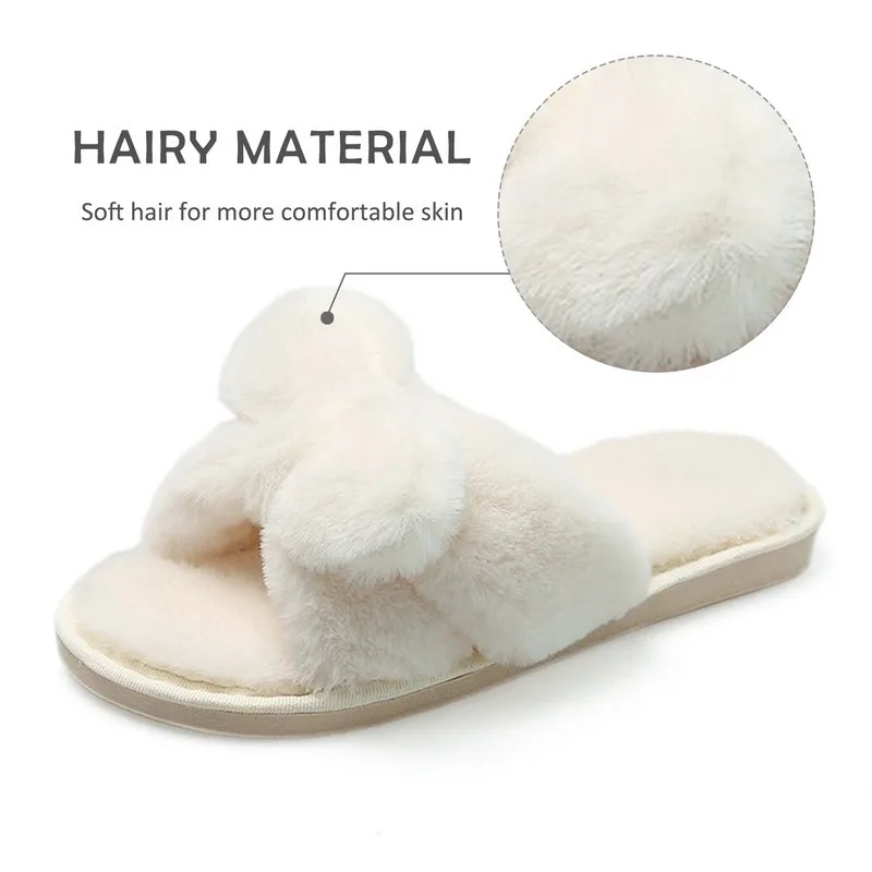 Женские домашние тапочки Kawaii плюшевый кролик с ушами, мягкая удобная обувь с пушистым бантом, Летние Осенние шлепанцы на плоской подошве, симпатичные Тапочки для девушек
