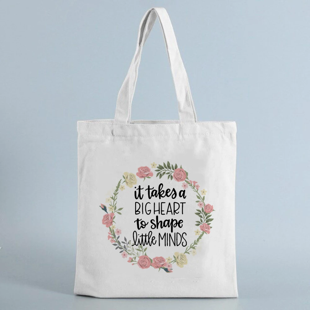 Это занимает большое сердце в форме маленького разума холст многоразовая хозяйственная сумка учительницы Наплечные тканевые сумки модный подарок шоппер Сумка-тоут