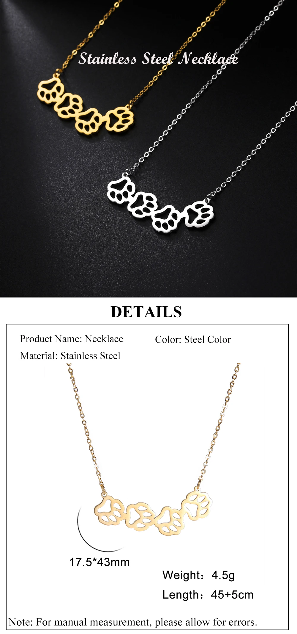 Ожерелье лапа питомца из нержавеющей стали