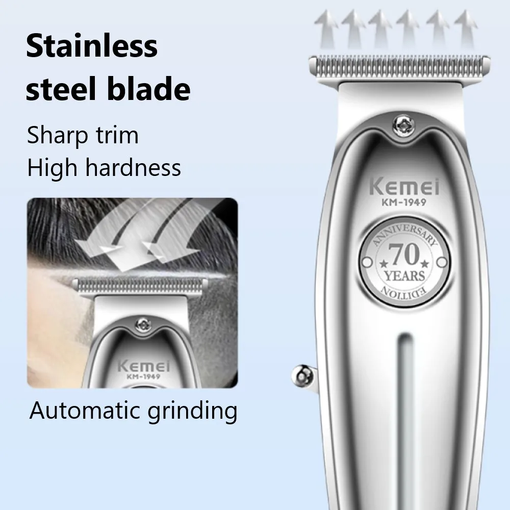 Электрический парикмахерский набор Kemei 1949, полностью металлический корпус, профессиональный триммер для волос для мужчин, литий-ионный мощный триммер для бороды, машинка для отделки