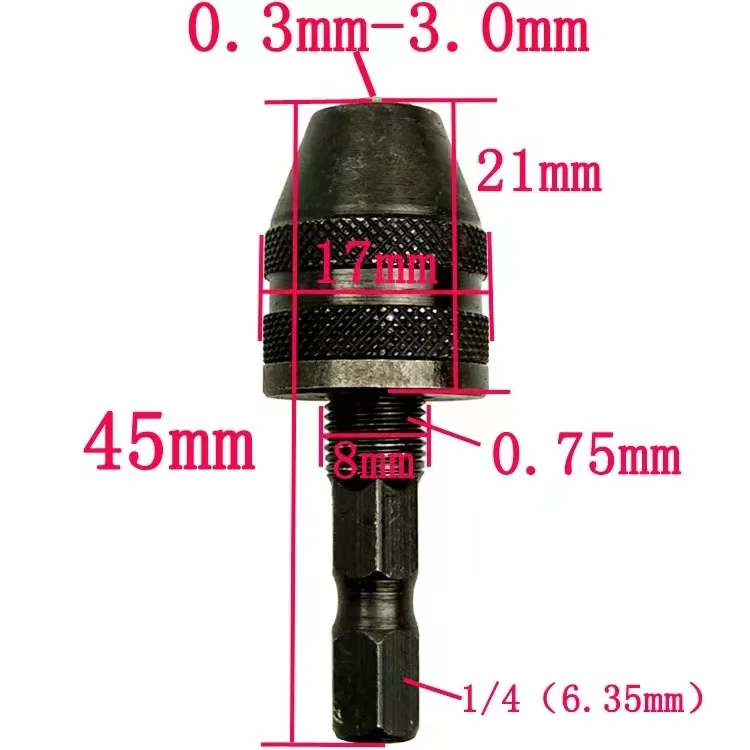 Характеристики продукции: 100% новый и высокое качество Мгновенно преобразует ударный драйвер, чтобы удерживать небыструю дрель и биты драйвера Быстро преобразуйте ваш быстрый драйвер шестигранного хвостовика в сверло! Бесключевой патрон затягивает Пальцы для легкого изменения бит Неограниченное использование в автоматических, гаражах, складах, офисах, домах и т. д. Материал: сплав Цвет:Серебристый/черный Соединительный хвостовик: 1/4 дюйма (6,35 мм) шестигранный хвостовик Диапазон зажима: 0,3-3 мм Шаг: 0,75 мм Общая длина: около 45 мм Посылка включает в себя: 1 X адаптер быстрого изменения патрона