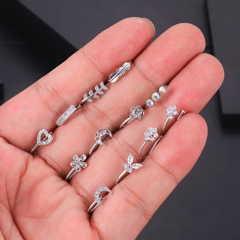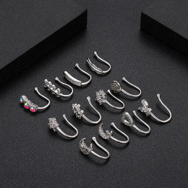 Пирсинг в виде сердца из нержавеющей стали, кольцо для носа, звезда, фальшивая клипса для носа, искусственный пирсинг, 1 шт.