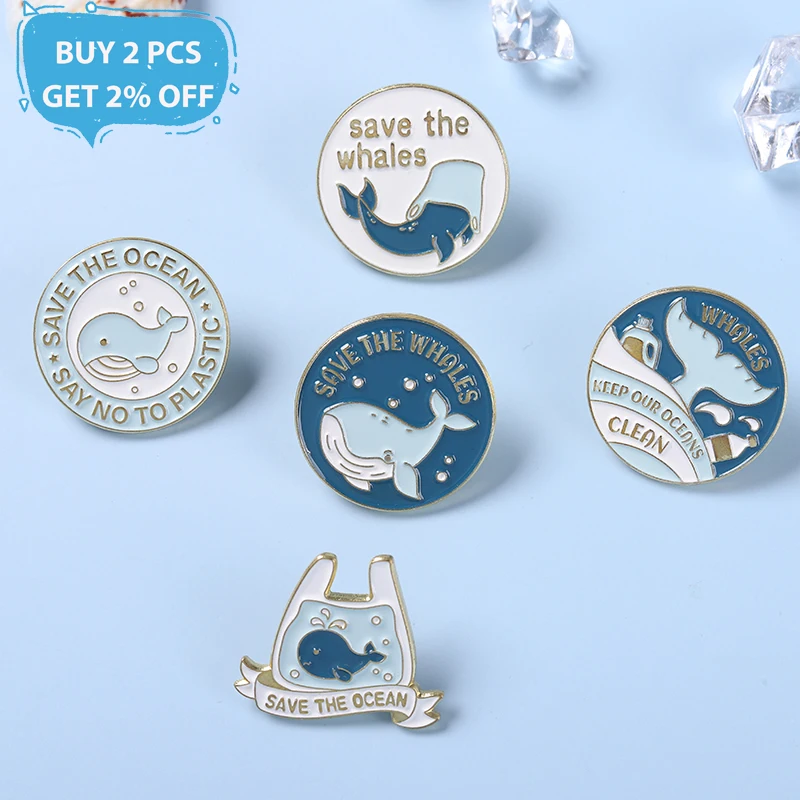 Защитите океанские эмалированные штифты из пластика! Брошь Горбатый...